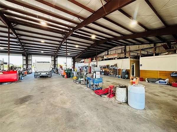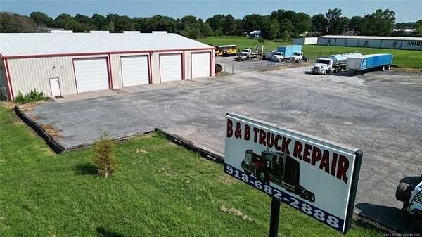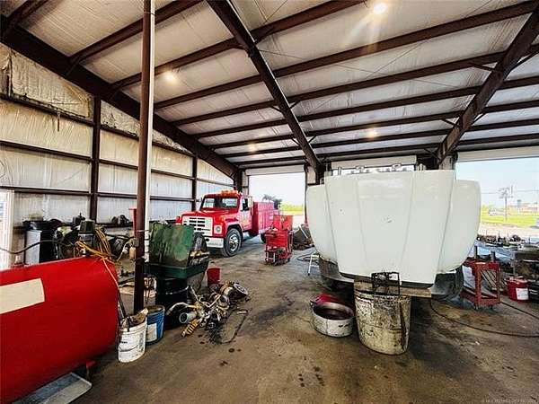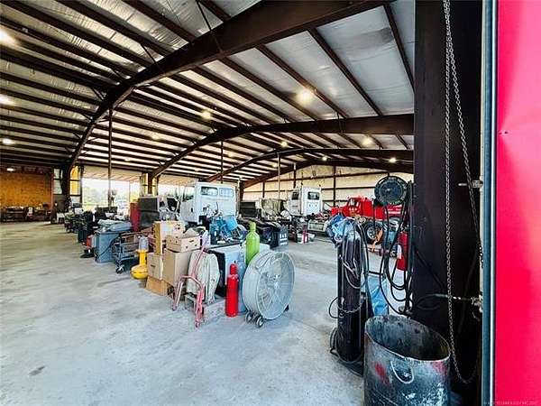 Prime Commercial Property on Highway 69, Muskogee - Ideal for Heavy Equipment, Trucking or Industrial Use. This expansive 10-acre commercial property on Highway 69 in Muskogee offers an unparalleled opportunity for businesses seeking high visibility and easy access. The property features two versatile buildings, a spacious storage yard, and excellent infrastructure, making it perfect for a variety of industrial or commercial uses. Building 1: * Size: 9,600 sq ft * Features: * Four 80 ft drive-through bays, each accommodating full semi trucks and trailers * Reinforced concrete slab throughout designed for Heavy Equipment * Reception area, two offices, break room, and two public restrooms * 1,600 sq ft of additional storage space and a dedicated equipment room * Updated LED lighting throughout * Equipped with two 80-gallon air compressors and 1.5-inch air lines, stored in soundproof room * Equipped with monitored Alarm System * Wired for fiber optic internet and phone * 20ft overhang on back shop spanning 3 bays Building 2: * Size: 2,600 sq ft * Features: * Four additional bays, providing flexibility for various operations Additional Property Highlights: * Storage Yard: Securely fenced, offering ample space for equipment and materials * Location: Situated on Highway 69, one of Muskogee's busiest routes, ensuring maximum exposure with a high traffic count This property is ready to support your business needs with its robust features and strategic location. Don't miss the opportunity to establish your operations in this prime Muskogee location.