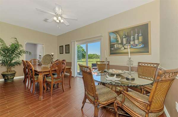 Step inside and you’ll immediately notice the upgraded kitchen and wood-grain tile flooring that runs throughout the home—bringing warmth, durability, and style together. The open floor plan makes it easy to relax, entertain, or simply enjoy the quiet surroundings. A brand-new hurricane slider not only adds peace of mind during storm season, but also creates the perfect backdrop for those unforgettable Florida sunsets.