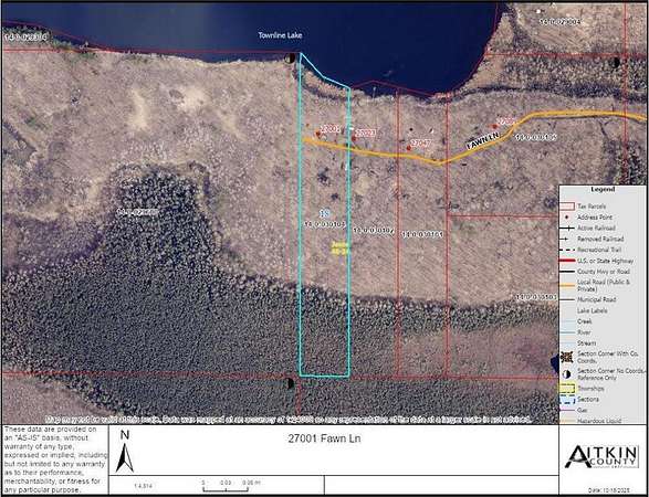 If you love the idea of THE most private end of the road setting you can imagine, this may be the property for you! Located literally at the end of the road, this is an intensely quiet peaceful setting on the rippling waters of Townline Lake, with 6 acres to roam, hunt or just enjoy nature! A perfect place for your possible future "dream home" building plans. A darling 7x11 bunkhouse is already in place for your immediate use, and is equipped with electricity and baseboard heat that more than does the job to heat the space in the winter! Plus a garden shed, wood shed and outhouse. For winter fun, the local snowmobile trail is a quick ride to the west side of Townline lake. Something to contemplate... consider a "side by side double lake lot" purchase which would total 12 acres, for your multi-family/multi-friend potential purchase, or if you are simply interested in even more space and privacy than what this 6 acre lot offers, check out adjoining property also for sale in residential listings, MLS #6805901