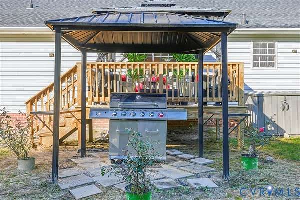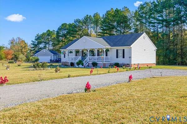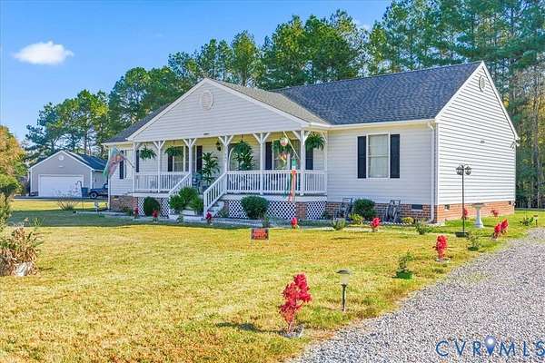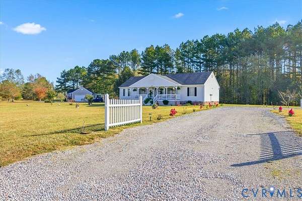 Say hello to this little slice of paradise in this quiet pocket of Dinwiddie County! Ideally located close enough to the city for shopping, dining, medical, and travel convenience, while also being far enough away for quiet enjoyment in your own back yard. This home is situated on a beautiful 1.5-acre lot, featuring a large gravel driveway with plenty of parking space, garden borders with an array of flowers and plants to enjoy in the spring, peach trees, and ample space to add your homesteading projects! You're offered a warm welcome onto a full country porch and into the bright foyer of this home. To the right you'll find a spacious morning room with a large window for plenty of sunlight, ideal for entertaining, and to the left you'll find the formal dining area with beautiful chair and crown moldings and decorative lighting. Through the entry hall, you're welcomed into a spacious living area with a vaulted ceiling, chandelier, corner fireplace, access to the kitchen area and sliding doors to the back deck. The kitchen offers ample cabinetry, bar-top seating, a vaulted ceiling and access to the laundry room and primary bedroom. This primary bedroom has a generous amount of space, and offers a double closet, walk-in closet, and en-suite bath with a jacuzzi tub, walk-in shower, and a double vanity. The other end of the home holds a pull-down attic with flooring available for storage, a full shared bath, linen closet, and two spacious bedrooms, each with a double closet for storage. The rear of this property completes this home with a gazebo on the deck, separate patio with a small gazebo for the grill, and the wood line to offer maximum privacy. Roof replaced in 2024, HW Tank 2025. Please note there are no interior pictures provided as the owner wishes to keep the interior private from online viewings but PLEASE NOTE that the interior will most definitely show well as he has meticulously kept it in great condition with pride.