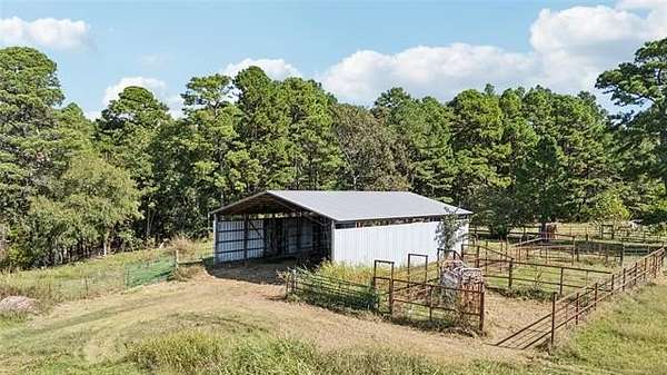 Looking for peace & quiet in the beautiful hill country of Cherokee County? This well-maintained 4/3.5/2 home sits on an expansive BEAUTIFUL 80+ acres with 4 ponds. Granite kitchen has pantry with pull-outs, large eating island, antique tin ceiling (Brooklyn tiles), & double ovens. XL primary suite (1st floor) w/walk-in closet, private bath w/dbl sinks, walk-in shower, jetted tub, and (bonus!) an additional room--ideal for an art room, hobby space or dressing quarters. Two secondary bedrooms down, one secondary bedroom up w/private full bath. Living room has built-ins for lots of storage & tons of windows for natural light! Lounge peacefully on an enclosed porch. This property is perfect for cattle, horses, goats, chickens; includes a hay barn, shop w/electricity & water, chicken coop, horse paddock, & stable. Enjoy fresh peaches from a peach tree out front! The land is about 60/40 woods to pasture. Hunting permitted/lease option; hunting stands are available.