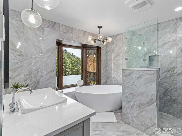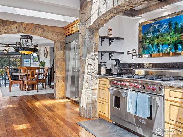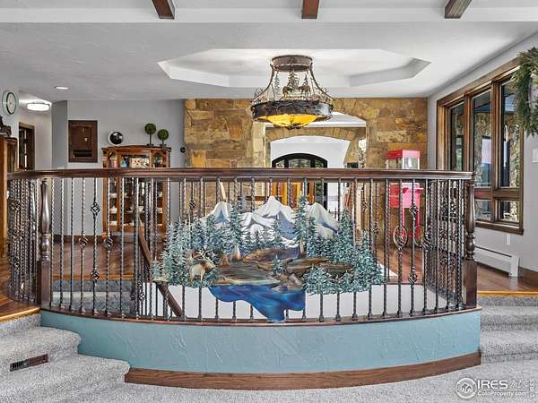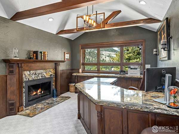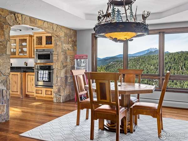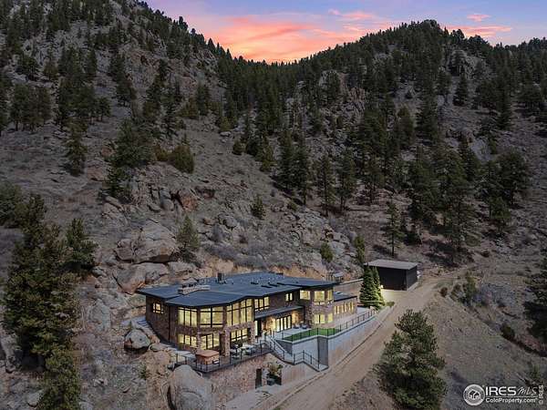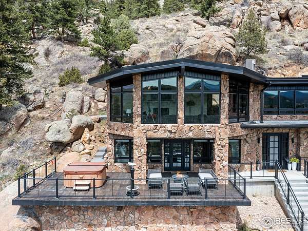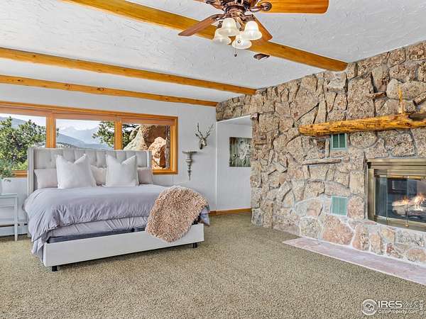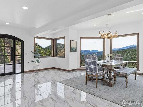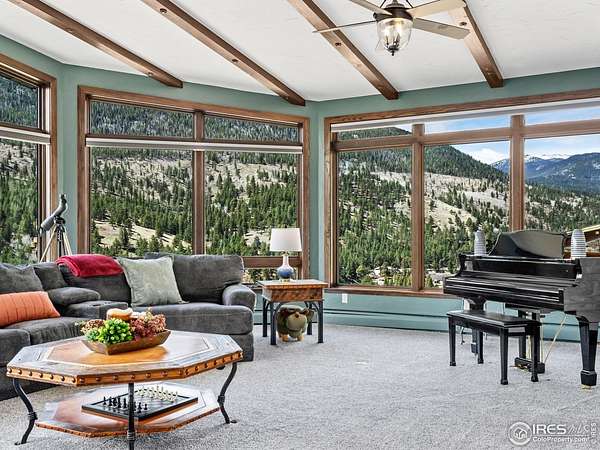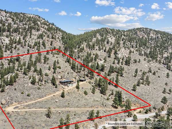 Breathtaking panoramic mountain views surround this expansive 12-acre hillside estate, perfectly positioned on the sunny, south-facing slopes of McGregor Mountain and just one mile from the entrance to Rocky Mountain National Park. With coveted A-1 zoning for short term rentals and direct adjacency to RMNP along the northern boundary, this generational property offers rare privacy, flexibility, and endless potential. Recently renovated, the home blends high-end craftsmanship with thoughtful design, featuring premium amenities such as a Hartley Botanicals greenhouse, sauna, multiple steam showers, motorized blinds, and bespoke fixtures throughout. Expansive windows frame stunning vistas from every room. The upper level offers generous living and dining areas, a gourmet kitchen anchored by a commercial-grade Wolf gas range, and access to a sprawling rooftop deck-perfectly positioned for outdoor entertaining and enjoying sweeping views of the Estes Valley and into RMNP. The lower-level addition offers incredible potential with space designed for a home theater, large family room, additional bedroom and bath, abundant storage, and a massive 6-car attached garage-ready for your final touches. The estate's A-1 zoning unlocks a world of opportunity. Ask Larimer County about the potential for additional cottages or cabins. Existing plans are available to transform the 28' x 50' detached garage into a fully finished guesthouse or rental. Use it for RV parking, storage, or as a spacious workshop. Or develop remaining acreage with permitted income-generating options such as cabins, condos, or townhomes. This is a truly one-of-a-kind mountain property-move-in ready and full of future potential.
