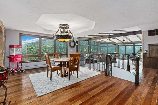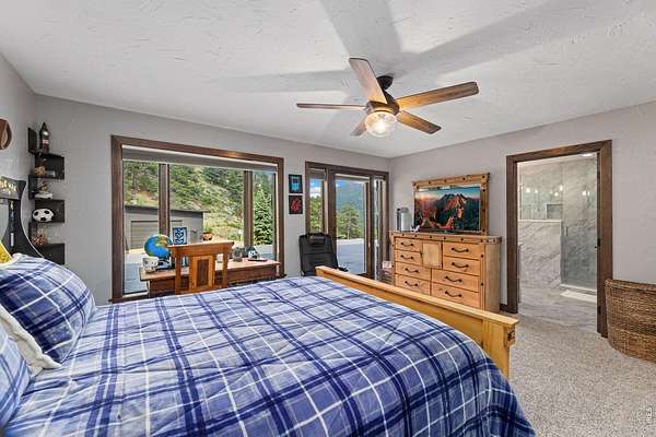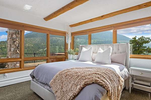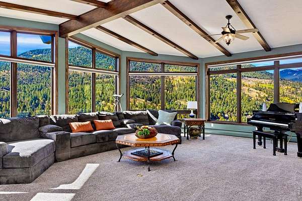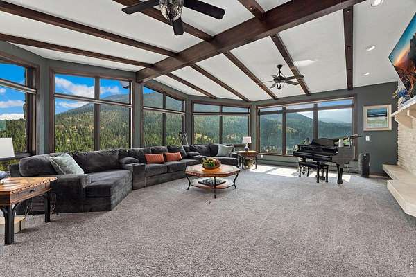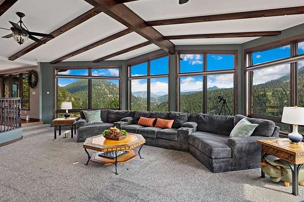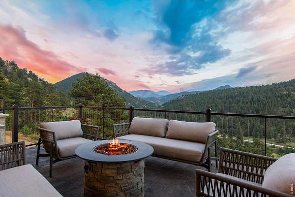Astounding panoramic mountain views pour through every window of this extraordinary 12-acre hillside estate, perched high on the sunny south-facing slopes of McGregor Mountain and bordering Rocky Mountain National Park to the north.Just one mile from the Fall River entrance, this is a rare opportunity to own a generational property where privacy, scale, and proximity to RMNP align in remarkable fashion.Recently expanded and extensively remodeled, the home offers generous living spaces and a canvas ready for your final vision. High-quality construction and curated features include a sauna, multiple steam showers, motorized blinds, bespoke fixtures, and a Hartley Botanicals greenhouse - all set against sweeping views into RMNP and the Estes Valley.The upper level is designed for gathering, with multiple dining areas and a well-appointed kitchen anchored by a massive commercial Wolf gas range. Step outside to the newly completed rooftop deck with composite decking and iron railings, where panoramic views and mountain air create an unforgettable outdoor living experience.The lower-level addition opens the door to even more possibility, with space planned for a home theater, family room, additional bedroom and bath, and a 31' x 42' attached 3-car garage, all awaiting your finishing touches.With coveted A-1 zoning, the potential extends far beyond the home itself. Short-term rental licensing may be applied for without restriction to the typical waiting list or cap (buyer to verify with Larimer County). Explore opportunities for additional residences, cabins, or income-producing uses. Existing plans support conversion of the 28' x 50' detached barn/garage/workshop into a separate living space or barndominium or just stuff it full of your toys! Private, expansive, and filled with possibility - yet just yards from RMNP and a couple minutes from town - this is a mountain estate where vision meets reality.