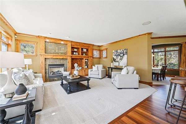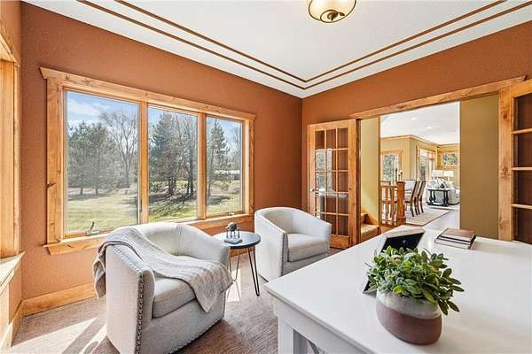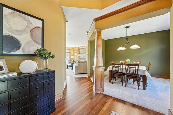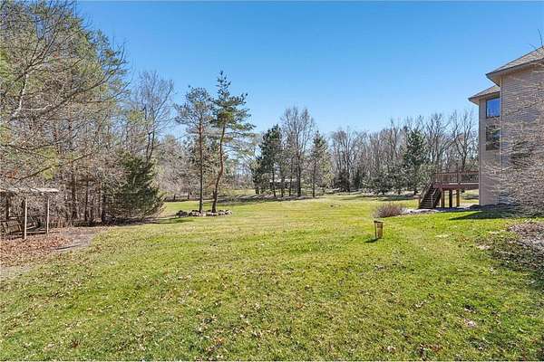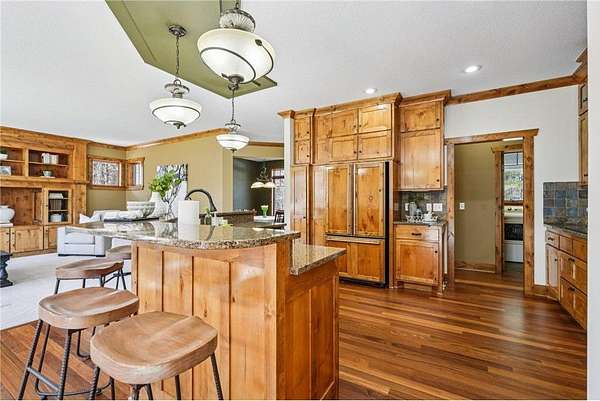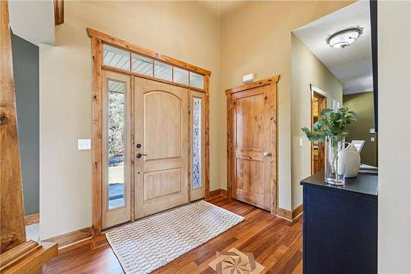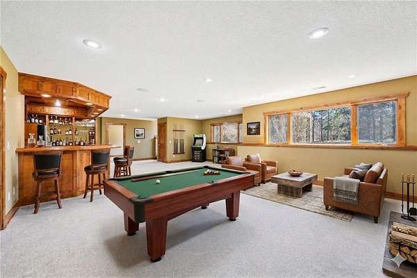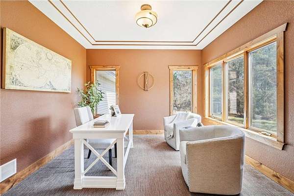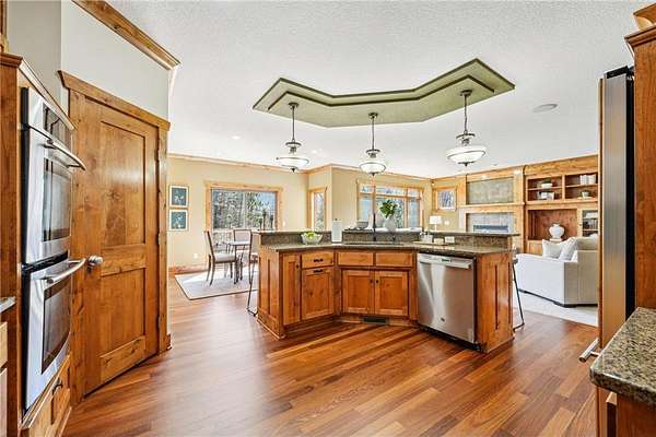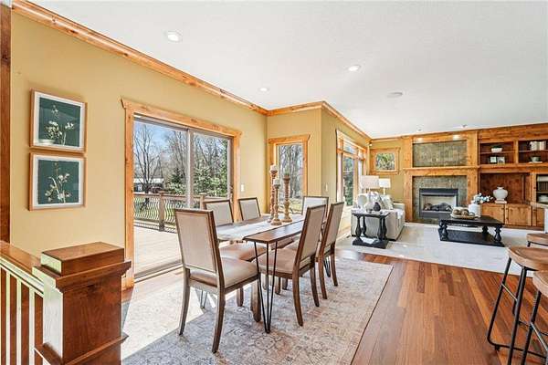 Inside, you’ll find extensive woodwork, knotty alder cabinetry, a built-in entertainment center, and refinished cherry hardwood floors. The spacious layout includes a well-appointed kitchen, large living room with gas fireplace, dining room, office, and mudroom with access to a maintenance-free deck.