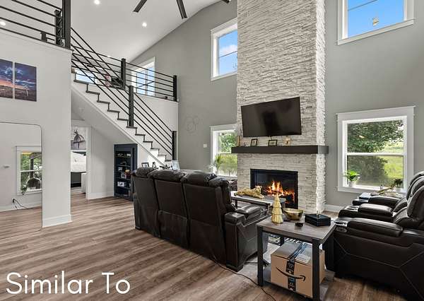 Build your dream barndominium on a picturesque 3 acre lot in a prime Adel location on PAVEMENT! This stately 1.5 story barndo plan offers 2,633 sqft with 3 bedrooms, 2.5 bathrooms & a 4+ car garage/shop. Curb appeal welcomes you home with a spacious covered front patio leading inside to and open floor plan with large windows boasting tranquil countryside views. You'll love the two-story great room with a floor-to-ceiling fireplace opening to the kitchen with an entertainer's island & huge pantry! Enjoy a zero-entry main level with sprawling primary suite & private access to the covered patio. A large mudroom and half-bathroom complete this level. Upstairs find 2 additional bedrooms, full bathroom & bonus loft area. The garage/shop is a highlight with 14' walls, vaulted ceiling, 12" garage doors, heated/cooled & hot/cold spigot. An easy drive to the airport, downtown or rest of the metro. Customize this home to your liking, call today for more info!