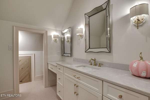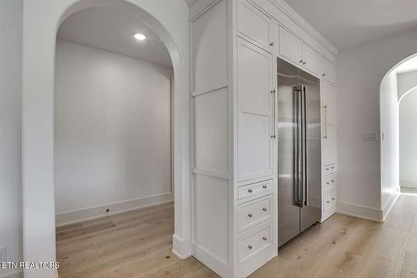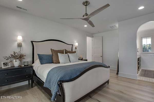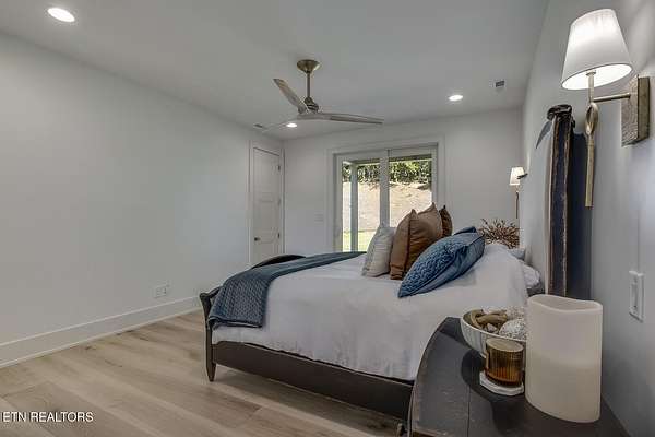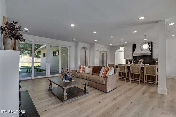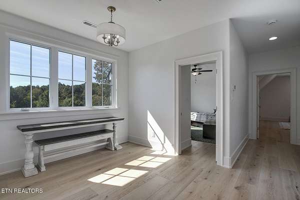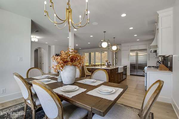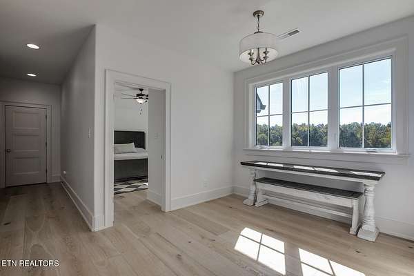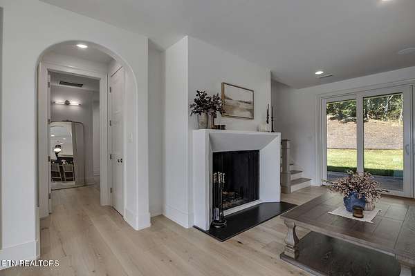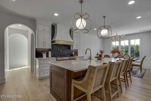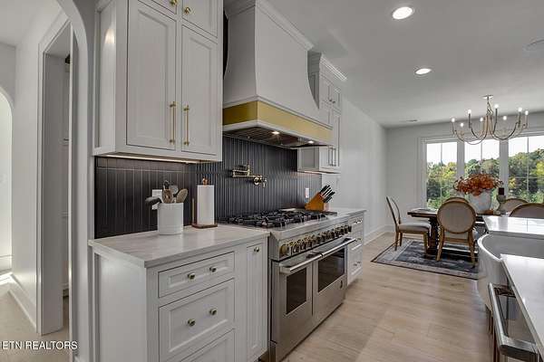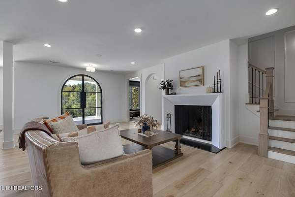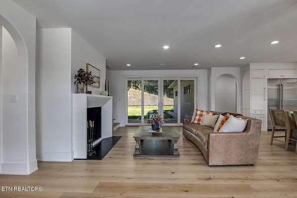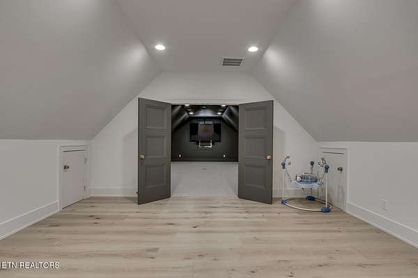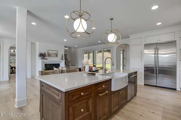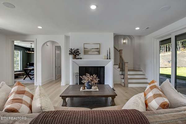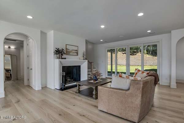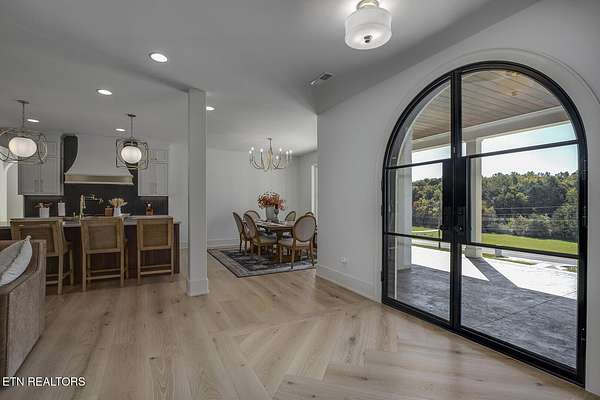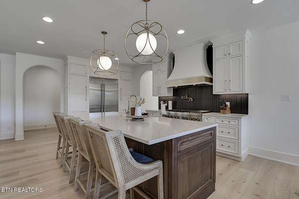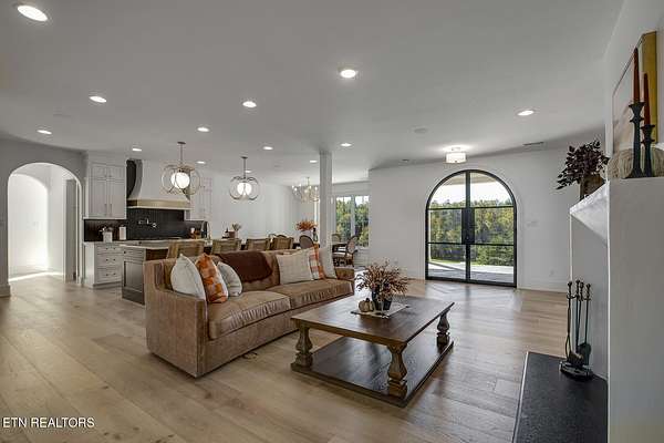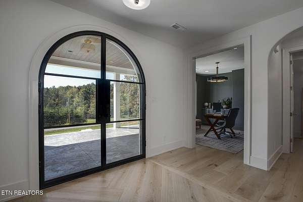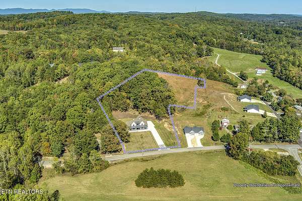 Come home to this builder's personal custom residence, thoughtfully designed with refined luxury and set on just under five picturesque acres. Enjoy the peace of a country setting while being only minutes from Lenoir City, West Knoxville, and convenient access to I-75 and I-40. A welcoming covered front porch leads through double glass doors into a stunning living space highlighted by a herringbone hardwood foyer, custom-crafted mantel, and wood-burning fireplace-perfectly positioned to flow into the kitchen and breakfast area for effortless entertaining. The chef's kitchen is outfitted with commercial-grade appliances, a 6-burner propane range with griddle, electric stove, reverse-osmosis pot filler, inset cabinetry, built-in spice racks, and under-cabinet lighting. A full butler's pantry elevates functionality with a pellet ice maker and secondary sink featuring reverse-osmosis drinking water. The main level also includes a private study with custom built-ins and an RO water line for coffee, a full guest bath conveniently located off the rear patio (ideal for future pool access), and a spacious mudroom with abundant cabinetry and storage. The oversized garage features glass garage doors, epoxy flooring, and is pre-wired for a generator, electric vehicle charger, and pool equipment. The primary suite, located on the main level, offers private patio access and a spa-inspired bath with dual vanities, a soaking tub set within a dramatic open dual shower featuring rain heads, standard heads, and body wands. The custom walk-in closet is complete with tailored shelving, drawers, and hanging rods. Upstairs you'll find four generously sized bedrooms, two full baths, a sitting area, playroom, bonus/media room, and ample storage and mechanical space. Bedrooms include custom closet systems, while the theater room is equipped with a mini bar, refrigerator, 80' Samsung TV, Sonos soundbar and subwoofer, pre-wiring for a projector, and stadium-style floor seating. Additional features include spray foam insulation +select interior insulated walls sound, soft-close cabinetry throughout, engineered hardwood flooring, tankless water heater, multi-zone HVAC, whole-house water filtration with reverse osmosis, irrigation system, exterior camera system, and Sonos audio on the main level, rear porch, and theater room. This exceptional property offers unmatched beauty, refined craftsmanship, and room to roam-whether you envision adding a pool, cultivating a garden, or embracing a small homestead lifestyle. Homes of this caliber on acreage are a rare offering in Loudon County.
