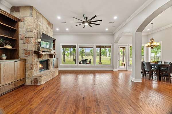 Remarkable property on 2 acres in a prime Marble Falls location just off Mormon Mill Road. This spacious home offers 4 bedrooms, 3 bathrooms, and a versatile upstairs bonus room (approx. 620 SF) ideal for a media room, game room, or additional living space. Inside, you'll find two dining areas plus a dedicated office featuring built-in shelving and a two-sided desk-perfect for working from home. The exterior showcases a beautiful blend of San Saba stone and stucco, complemented by a welcoming slate tile front porch, classic dormer windows, and a wide covered front patio ideal for relaxing or entertaining. A grand circular drive adds both convenience and curb appeal, while the home and approximately 1 acre are fenced, offering privacy and flexibility. Beyond the split rail fence is an additional acre featuring a 1,064 SF barn with perimeter fencing. Located just minutes from town with room to spread out-this one is worth the wait. Photos coming soon.
