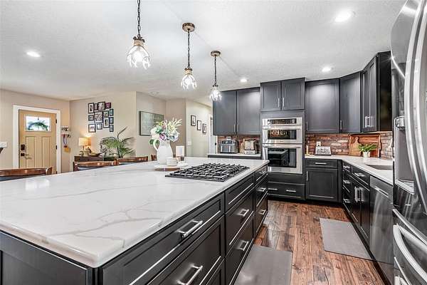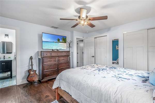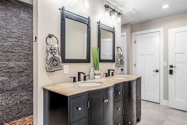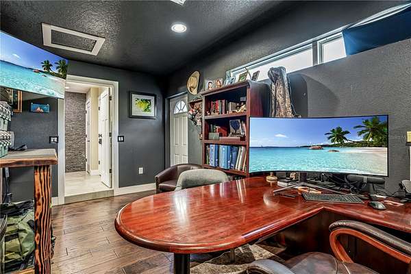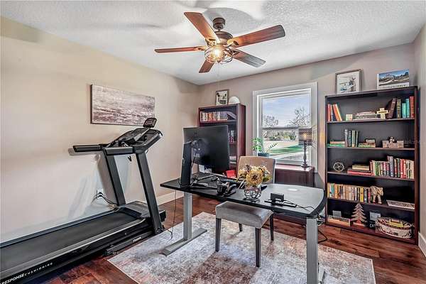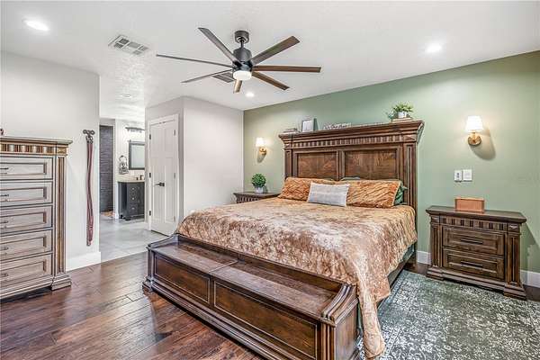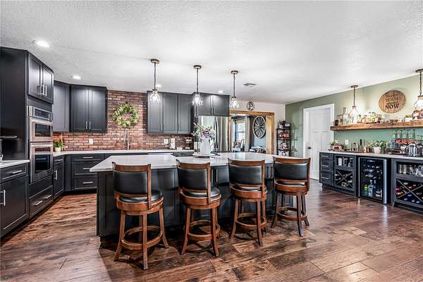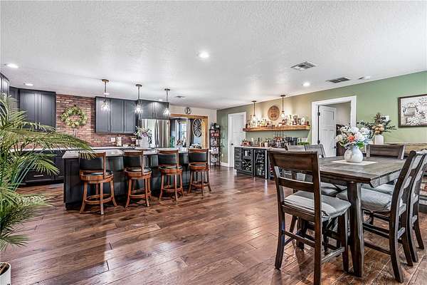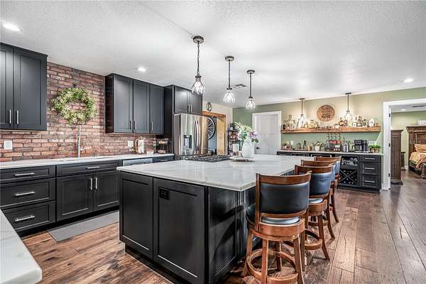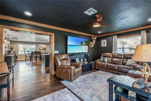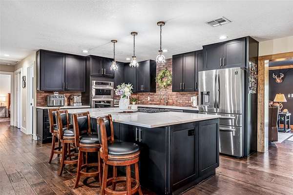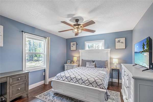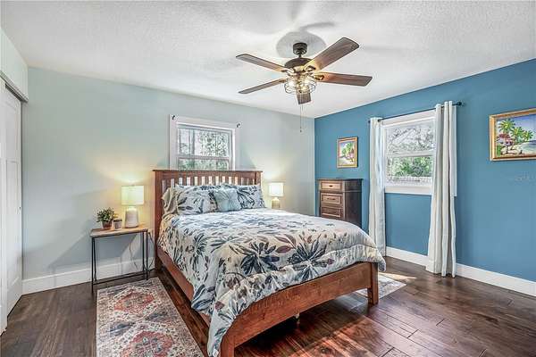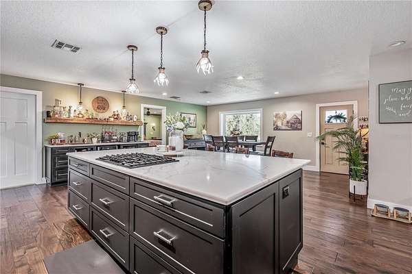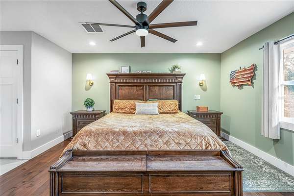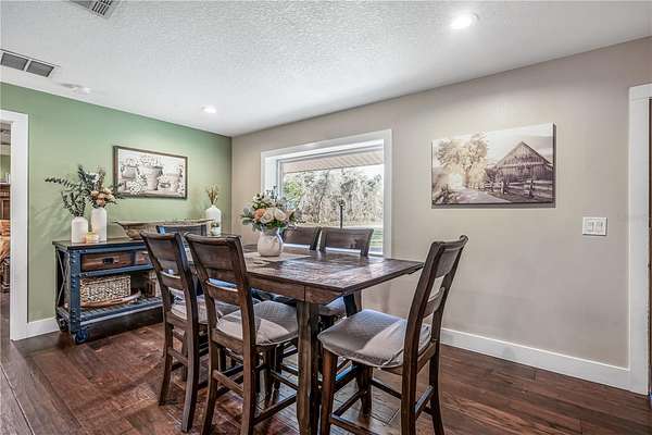 Escape to your own private country retreat on 4.5+/- acres in Eustis, where modern updates meet an exceptional outdoor lifestyle. This fully renovated block home offers 4 bedrooms, 3 full bathrooms, and thoughtful upgrades throughout, all completed during an extensive whole-home renovation in 2021. Inside, the home features an inviting open kitchen and dining area with a beautiful real brick backsplash, real cedar floating shelves, gas cooktop (propane), and all new appliances, including a built-in convection oven, microwave and beverage refrigerator, washer, and dryer. The home showcases all new wood flooring, fresh interior paint (2023), exterior paint (2025), solid wood interior doors on the primary suite wing, custom real wood trim with crown molding, and energy-efficient LED lighting throughout. The primary suite offers a peaceful retreat and includes a private office with its own exterior entrance, ideal for working from home or creating a flexible bonus space and could easily serve as a game room, hobby room, gym, or potential fifth bedroom. Major infrastructure upgrades provide peace of mind and modern efficiency, including new exterior windows and doors, full home rewire, underground power to the home, new 400-amp electrical service, full plumbing repipe, new attic insulation, and two separate gas tankless water heaters. The home is serviced by a 500-gallon buried propane tank owned by the homeowner. The main home septic system was replaced in 2022 and the second septic was added in 2025 designed for the RV and future barn bathroom. Outdoors, the property truly shines for those seeking space, privacy, and recreation. The land features a private pond, mature trees throughout the front and back of the property, and established blueberry bushes. The front and backyard were fully fenced in 2025, offering both security and flexibility for animals or recreation. The impressive barn/workshop built in 2021 features an insulated roof, three roll-up doors including one 12-foot door, 125-amp electrical service, and a 50-amp RV hookup and is 30 x 80 in size. An additional 12’ x 18’ storage shed built in 2025 provides even more storage space. Additional outdoor features include a 150-yard private shooting range, hard-packed milling driveway, large concrete RV pad, detached single-car garage on slab, and a large back patio with built-in sound system, making it perfect for entertaining or relaxing while enjoying the peaceful setting. With agricultural zoning, this property is ideal for those looking to bring horses, chickens, or other animals, while still enjoying the comfort and efficiency of a beautifully updated home. This rare property offers the perfect balance of privacy, functionality, and modern upgrades all just a short drive from town while feeling worlds away.