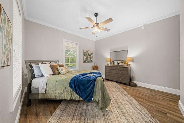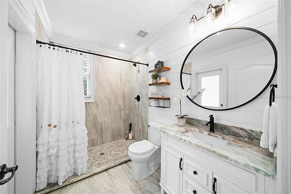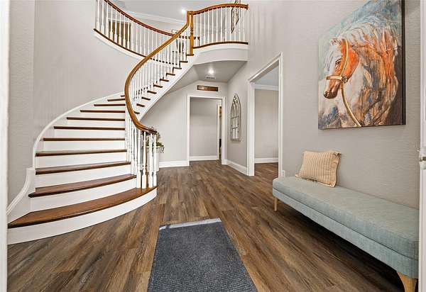 5,513 sq. ft. of beautifully designed living space, 5 spacious bedrooms & 5 full bathrooms, Elegant two-story layout with soaring ceilings, grand chandelier, and stately spiral staircase, Screened heated pool & jacuzzi with expansive patio perfect for entertaining, Wraparound porch with breathtaking sunrise and sunset views,