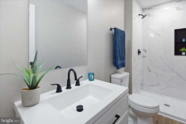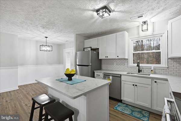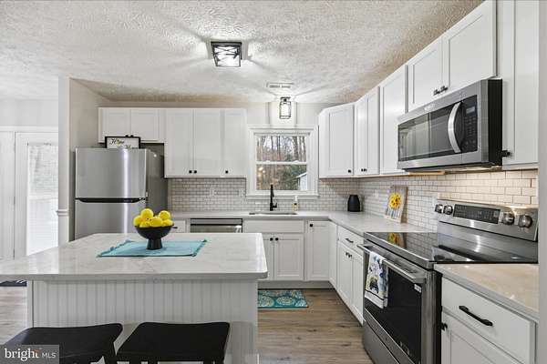 Nestled near the back of the desirable Country Lakes community, this completely remodeled split foyer home offers a harmonious blend of privacy and comfort. Step inside to discover a bright and open floor plan of the living room, dining room and kitchen areas. The kitchen features upgraded 36" white Shaker soft-close cabinets, quartz countertops, an island with seating space, and stainless-steel appliances, perfect for culinary enthusiasts. The dining room provides access to a back deck, perfect for outdoor dining. Down the hallway is a full bathroom and the first three bedrooms, boasting with plush new carpets and modern LED lighted ceiling fans, equipped with remote controls. The primary bathroom exhumes luxury with the custom tiled walk-in shower, 30" vanity and modern matte black fixtures. Enjoy cozy evenings by the Wi-Fi capable electric fireplace in the lower-level large family room, also with plush new carpet. The fully finished basement features the additional two bedrooms, a full bathroom, and an open flex area that can easily be transformed into a kitchenette or simply a workout room. The lower level also has a separate outside access to the backyard, making a potential rental space readily available. Contact the listing agent for details on closing assistance and a home warranty all paid for by the seller!
