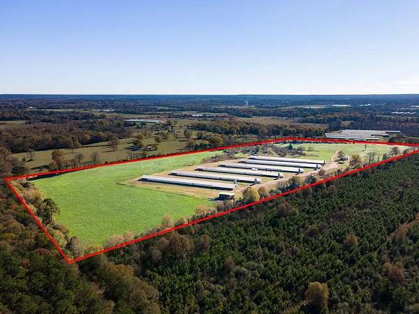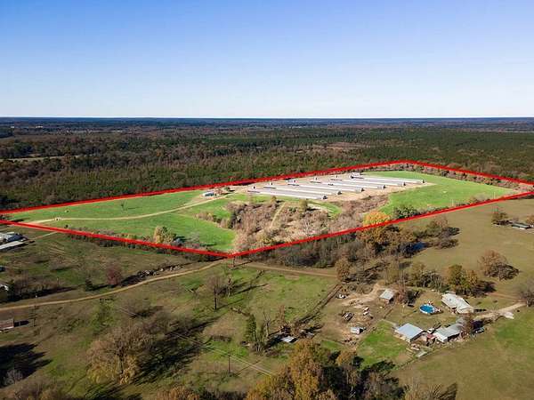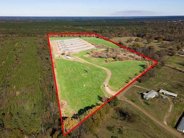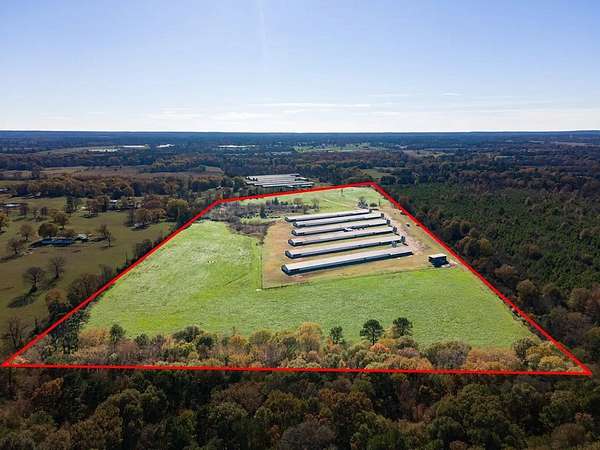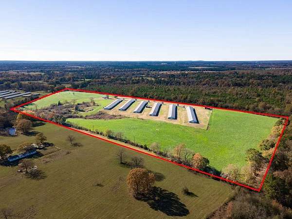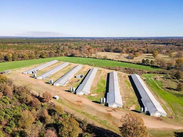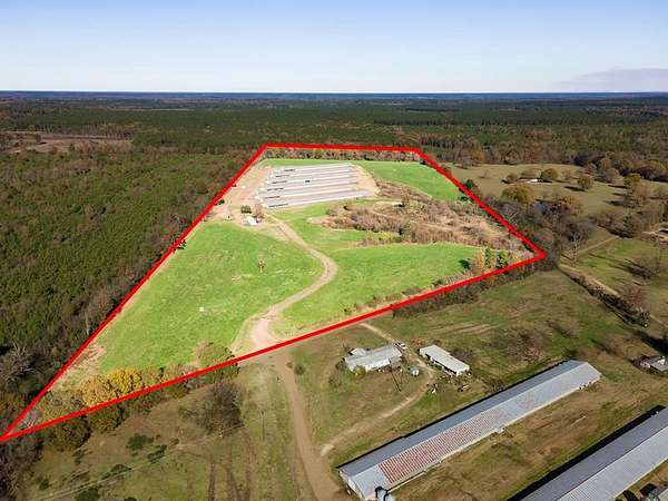 Well-located 6-house broiler farm in Center, Texas, offering an opportunity for continued poultry production with an established integrator. The farm consists of six 40' x 400' broiler houses built in 1988 and is currently under contract with Tyson Foods on a 7-week grow-out complex. Situated on 43.85 acres, the property provides ample space for farm operations, biosecurity setbacks, and future improvements. Improvements include a mobile home suitable for on-site management or labor housing, a litter barn, and two incinerators for efficient mortality management. Water infrastructure includes two water wells and a 10,000-gallon water storage tank to support consistent flock needs. Power reliability is enhanced with a 150 kW generator, providing backup capability for critical systems. This poultry operation offers a solid foundation for an owner-operator or investor seeking a producing broiler farm in a strong East Texas poultry region.