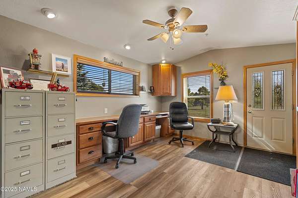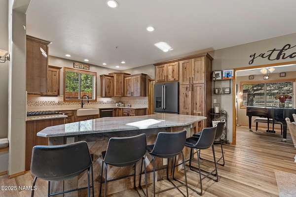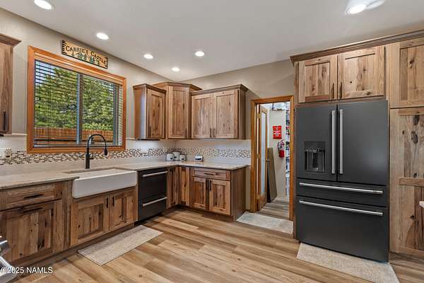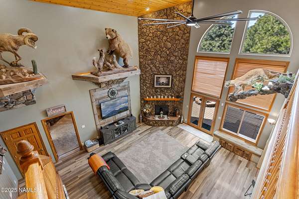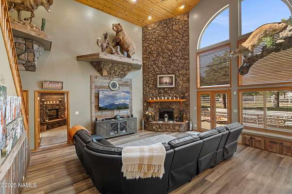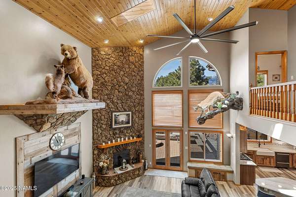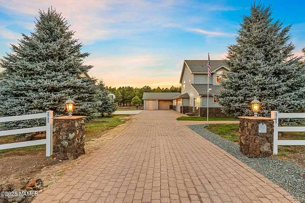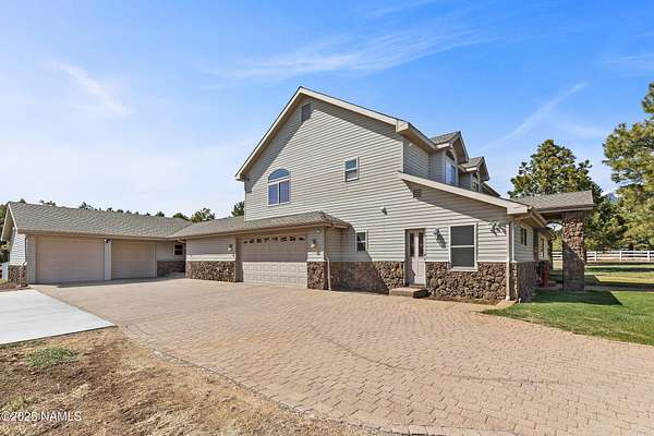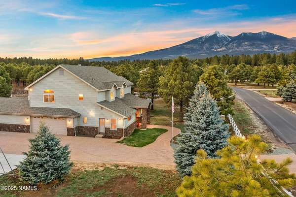 Just minutes from the slopes of Arizona Snowbowl and the vibrant heart of downtown Flagstaff, this extraordinary mountain estate offers a rare opportunity to live the ultimate Northern Arizona lifestyle. Set on a picturesque horse property surrounded by towering Ponderosa pines, this home perfectly balances privacy, adventure, and everyday convenience. Flagstaff may be known for its world-class skiing and snowboarding, but this town is so much more. From its charming downtown lined with local shops and award-winning restaurants to its countless hiking and biking trails, Flagstaff offers a lifestyle unlike anywhere else - and this home puts you right in the heart of it all. Designed for those who crave space, function, and luxury, this property is a true standout. The home features a private deep water well and natural gas rare finds in this area along with a grey water and rainwater catchment system for sustainable irrigation. An impressive 8-car garage, including two oversized RV bays with 14-foot doors, provides ample space for all your vehicles, toys, and gear. Multiple workshops offer endless possibilities for hobbies, storage, or creative projects. Inside, the home exudes warmth and comfort with in-floor radiant heating, soaring vaulted ceilings, new flooring, and an upgraded kitchen perfect for gathering with family and friends. The attached one-bedroom guest house, complete with its own entrance, is ideal for multi-generational living, visiting guests, or potential rental income. Step outside and take in the peaceful mountain surroundings from the outdoor hot tub or gather around the built-in fire pit the perfect setting for cool Flagstaff nights under the stars. With secured storage for trailers and equipment, a spacious game room, and two cozy fireplaces, this home truly has it all. Located just minutes from Flagstaff Medical Center and surrounded by endless outdoor recreation, this is a rare opportunity to own a mountain retreat that offers both serenity and convenience. Whether you're seeking a full-time residence, a weekend getaway, or a unique investment opportunity, this one-of-a-kind Northern Arizona estate is ready to welcome you home.