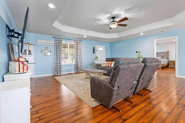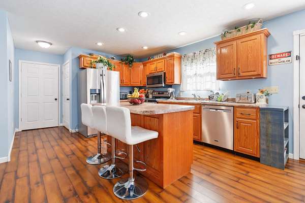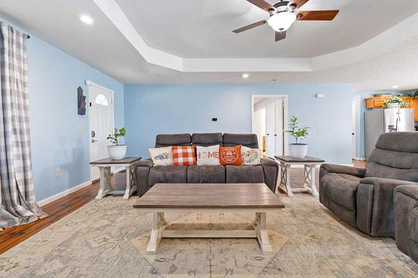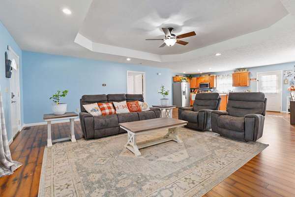 Welcome to this beautiful one-story colonial brick home featuring over 2,300 sq. ft. of inviting open-concept living! Offering 4 spacious bedrooms and 2 full bathrooms, this thoughtfully designed layout provides comfort and flexibility for every lifestyle. All bedrooms include generous walk-in closets, and the 4th bedroom-currently used as an office-is privately situated on the opposite end of the home, making it ideal for guests, in-laws, older children, or a dedicated workspace. The kitchen is the heart of the home, complete with an island perfect for meal prep or entertaining, plus a convenient pantry for added storage. A charming mud room currently serves as a dog room but can easily adapt to your needs. The fenced-in backyard is ready for your fur family, offering peace of mind and room to roam. Situated on 2.13 acres with scenic farmland views, this property also delivers exceptional exterior amenities: a detached RV/boat storage building, a detached carport for hobbies or extra parking, and a 2-car attached garage. Enjoy being just minutes from Burnside Marina, Conley Bottom Marina, two nearby boat ramps, and close to Woodsen Bend Resort-perfect for lake and golf lovers! Additional peace of mind comes from the fully encapsulated crawlspace completed within the past year. This beautiful brick home truly checks all the boxes-space, storage, outdoor amenities, and a prime location near recreational hotspots. Don't miss your chance to make it yours!