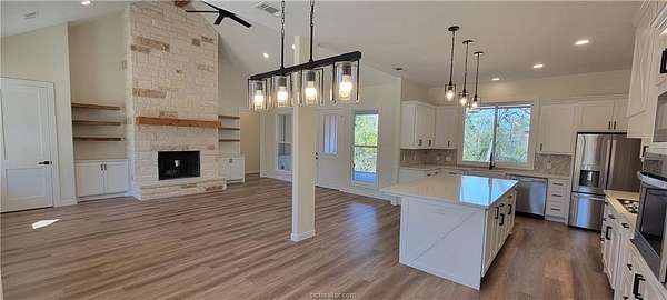 Welcome Home to Enchanted Forest Subdivision! This beautiful new construction home is located just 4 miles from Franklin, TX and is nestled within over 5 acres of woods including towering oak trees in one of the area's newest rural subdivisions in the much sought-after Franklin ISD. The home offers 3 bedrooms and 2.5 bathrooms with 2,290 sq. ft. of customized, well-designed living space and a large kitchen and family room. This modern kitchen boasts granite countertops, stainless appliances, farm sink, extra large island with room for bar seating and a walk-in butlers pantry complete with wine cooler, microwave and generous shelving and cabinetry for storage. The primary bedroom suite includes a beautiful en-suite bathroom with a glass enclosed walk-in shower and freestanding decorative bathtub and cavernous walk-in closet with great built-in storage. The suite also conveniently includes a connecting laundry room with its own set of built-ins and ample storage. The home also features a wood-burning fireplace, spray foam insulation, raised ceilings, low-e windows, covered front and back porches, new septic system, metered water service and underground electric. Make an appointment today to come see your new home.
