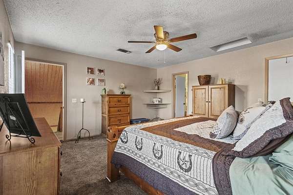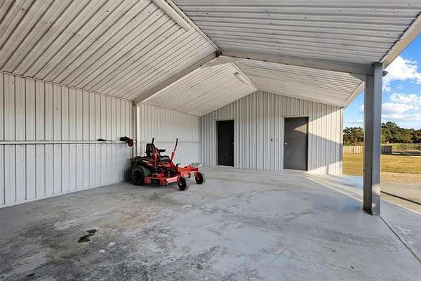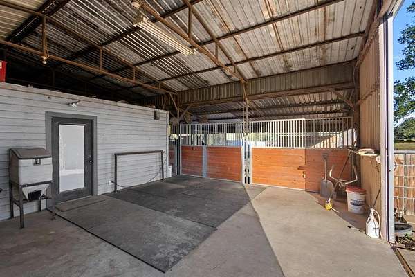 The property includes a 275-by-150 arena with a Quick Silver automatic chute, a 10-foot return alley, a stripping chute, and a catch pen. There are two 16-by-16 indoor stalls with 30-foot runs, two 35-by-35 pens with covers, a 16-by-30 pen with a cover, a 20-by-30 pen with a cover, and a covered back patch for shade. Additional amenities include a 30-amp RV hookup, a 16-by-16 insulated wash rack, a 20-foot Conex storage building, a six-horse electric walker, and 2 stalls equipped with self-waterers. The programmable electric front entry gate adds both convenience and security.