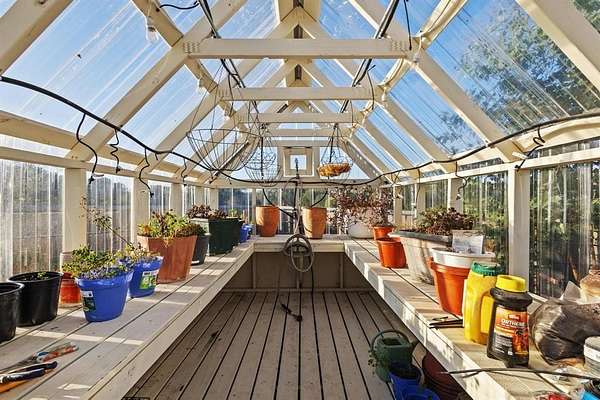 A separate guest house offers a full kitchen, living room, bedroom, and bathroom, complete with a tankless water heater.