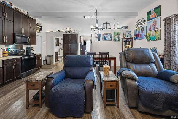 Mini farm on 2.26 acres with 3 bed / 2 bath 1964 sg ft house PLUS a 720 sg ft barn apartment with it's own 200 amp service! Ideal for income producing or multi-generational living. The house has a new LVP flooring throughout, vaulted ceilings, large island, split floor plan, new HVAC in 2020, updated light fixture, and 2 car garage. The barn apartment is a 1 bed / 1.5 bath with it's own front porch, open floor plan, new HVAC in 2023, new tankless water heater in 2025, laundry, and custom quartz countertops. The remaining barn is 1728 sq ft of shop/garage space with poured concrete floor, All house and barn appliances are included! Outside you will find a fully fenced back yard, chicken coop, garden, fruit trees, play set, and .75 acres of tillable land. No covenants or restrictions!