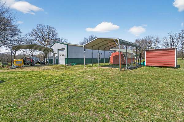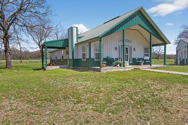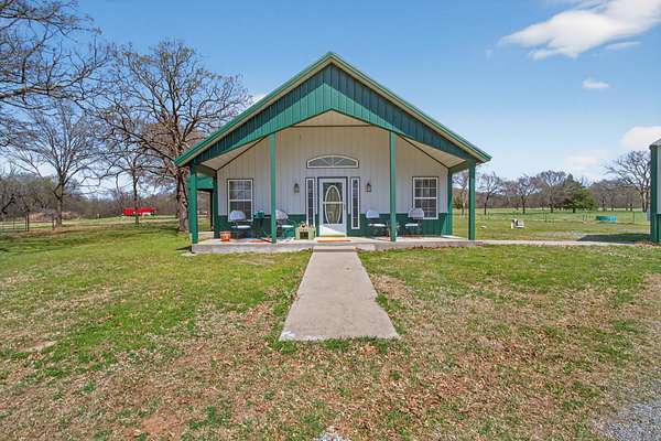 Country Home on 15 Acres For Sale in Locust Grove, Oklahoma; NE OklahomaWelcome to country living at its finest! This move-in ready home sits on 15 beautiful acres, offering the perfect blend of comfort, functionality, and wide-open space. Whether you’re bringing horses, cattle, or simply want room for kids to roam, this property is ready to accommodate your lifestyle. Conveniently located just 10 minutes from Chouteau, Locust Grove, and the MidAmerica Industrial Park, you’ll enjoy peaceful rural living without sacrificing access to nearby amenities and employment opportunities. The home features 2 spacious bedrooms, 2.5 bathrooms, and a huge upstairs bonus room with three closets—ideal as a third bedroom, game room, or home office. Inside, you’ll love the soaring 14-foot ceilings and thoughtful features like dryer hookups for both gas and electric. Built for durability and low maintenance, the home is fully metal-wrapped with weather guard protection—no painting required. Safety and peace of mind come included with a storm shelter on the property. For those needing workspace or storage, the impressive 30’ x 50’ garage/shop is a standout feature. It includes electric service, six overhead doors (four electric and two manual), two walk-in doors, and windows for natural light. Constructed with 2x6 walls and a vapor barrier, it’s ready for projects, equipment, or business use. The land is just as functional as it is beautiful, with water already run to the pasture—perfect for livestock and agricultural use. This is a rare opportunity to enjoy peaceful country living with modern conveniences already in place.