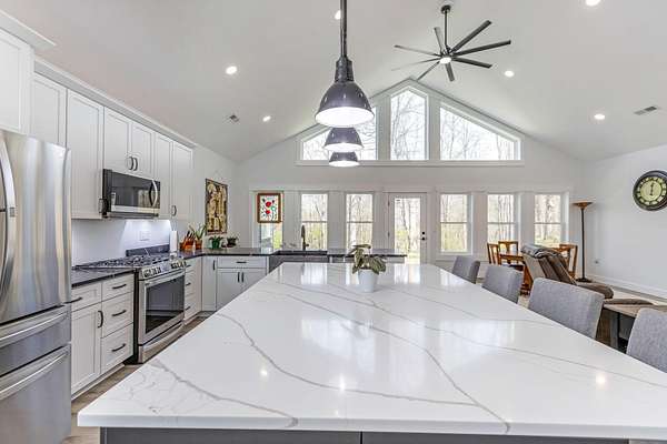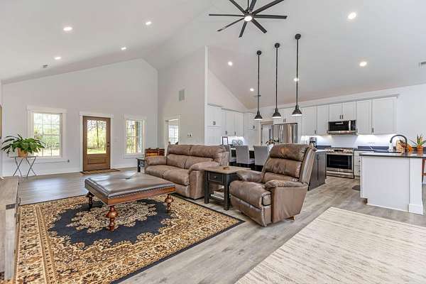 Tucked away in a setting where privacy, nature, and modern luxury come together, this is more than a home--it's a retreat designed for the way you want to live. Why wait to build when this stunning newly constructed modern ranch is ready now? Situated on 2.15 acres in a gated Canal Winchester community, this property offers rare privacy and natural beauty--backing to an 80-acre nature conservatory with wooded views, ravine landscape, and a peaceful stream. With over 2,400 sq ft, this 3-bedroom, 2.5-bath home features an open-concept layout with elevated finishes throughout. The kitchen showcases quartz countertops, sleek black and white design, and LG appliances, flowing seamlessly into the great room with a modern electric fireplace. The primary suite offers a private retreat, while bedrooms 2 and 3 share a convenient Jack-and-Jill bath. A dedicated office/den and first-floor laundry add everyday functionality. Designed for comfort and efficiency, the home includes forced air, gas, and radiant heat throughout--including a garage fit for a king with radiant heated floors. Additional highlights include a Generac whole-house generator, Bryant thermostat system, durable fiber board siding, a concrete driveway, and premium Clopay garage doors. Enjoy peaceful, scenic surroundings with the security of a gated community, all within Bloom Carroll Schools and close to area amenities. New construction, acreage, and protected land views--this combination is incredibly rare. Schedule your private showing today.