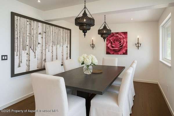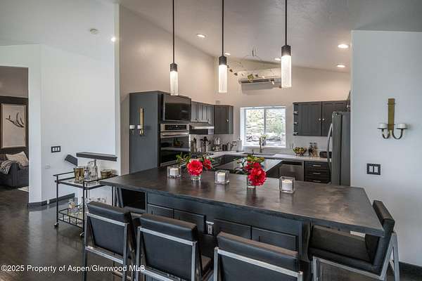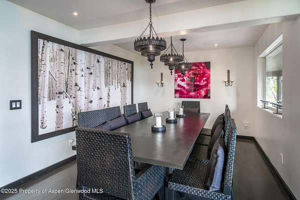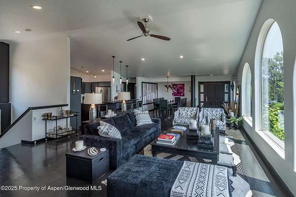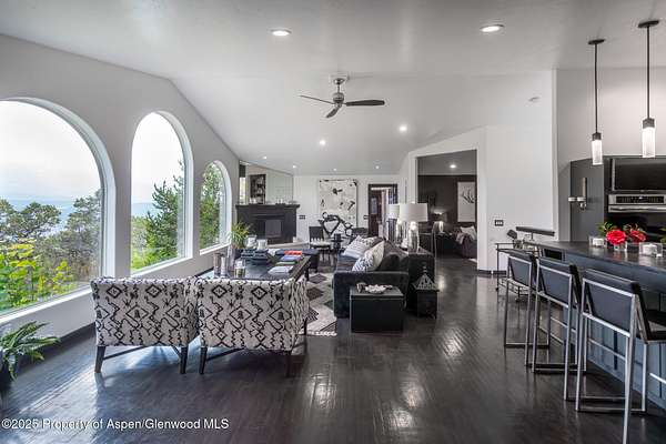 ABOUT ELK SPRINGS Elk Springs offers a rare opportunity to live in harmony with Colorado's natural beauty-where homes blend seamlessly into the pinion- and juniper-covered slopes, rolling grasslands, and wide-open mountain vistas. This private, gated community was thoughtfully designed to preserve the land's inherent serenity, protecting old-growth forests and allowing wildlife to roam freely across hundreds of acres of forever-protected open space. Framed by breathtaking views of Mt. Sopris and the surrounding ranges, this contemporary residence embodies the essence of Elk Springs living. Large windows in the living room and primary suite capture the grandeur of the landscape, filling the home with light and connection to the outdoors. The two-level, above-grade floor plan includes five bedrooms and four-and-a-half baths. The main level features the primary suite, a spacious living room with fireplace, a well-appointed kitchen with a private dining area, and a quiet office or library. The walkout level hosts four guest bedrooms, a media room, and a generous exercise room with a full shower-perfect for entertaining or multi-generational living. Set on over two beautifully landscaped acres, the property showcases lush gardens, meandering paths, tranquil water features, and inviting spaces for reading, relaxing, or swinging in a hammock beneath the trees. Expansive decks-both covered and open-offer unobstructed views of Mt. Sopris and the surrounding wilderness. Although close to Carbondale, the home carries a Glenwood Springs address and enjoys the exclusivity of Elk Springs' private gated setting-just minutes from both communities. Residents have the choice of attending either Carbondale or Glenwood Springs schools, adding flexibility for families. Meticulously maintained and thoughtfully updated in 2022-2024, recent improvements include new flooring, interior paint, refreshed bathrooms, upgraded kitchen appliances, new pantry cabinetry, a redesigned kitchen bar, new carpet, and a freshly painted exterior. Additional enhancements include a re-asphalted driveway, new upper-level air conditioning (2023), and a radon mitigation system (2024). The home is offered furnished or unfurnished, to suit buyer preference, excluding artwork. A spacious three-car garage and abundant storage complete this turn-key mountain retreat.