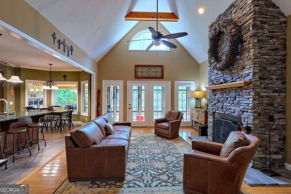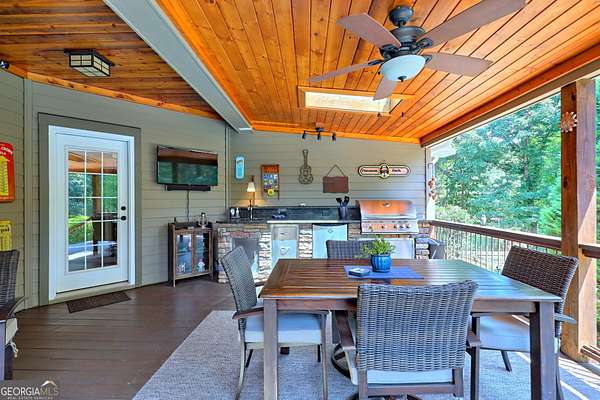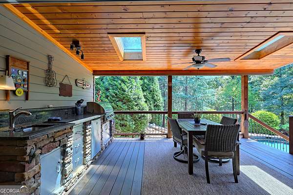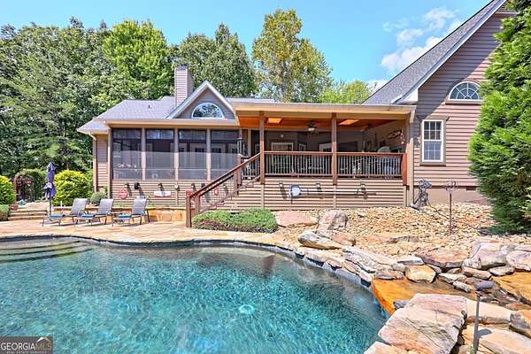 Experience mountain living at it's finest in this stunning 3 bedroom and 2.5 bathroom home nestled on 4.08 private acres. Located in the desirable Chattahoochee Glen Subdivision and offering large expansive lots inside the security of a gated community. The homeowners built the home over 20 Years ago and have lovingly maintained and meticulously upgraded this property throughout the Years where it counts. The main level features an open concept large living area complete with stone fireplace perfect for dinner parties and hosting guests. The dining area is flanked by a gourmet kitchen complete with cherry cabinets, granite counters, stainless steel appliances, large peninsula well suited for cooking, dining and entertaining. Three bedrooms on the main level with 2.5 baths and laundry room complete the main level. Upstairs one will find a large open room perfect for guests, playroom or office space. Step outside onto the all season screened deck, an amazing spot to dine al fresco, enjoy a book anytime of Year or watch the family as they enjoy the beautifully designed pool with attached hot tub. Adjacent is the grilling deck complete with a custom built in outdoor kitchen with additional seating for large gatherings. The exterior grounds are beautifully landscaped and include hardwired speakers to listen to your favorite music while enjoying the outdoors. Outbuilding offers additional storage. All this located in the security and prestige of a gated river community located one and a half hours north of Atlanta and conveniently located between Clarkesville, Helen and Cleveland.