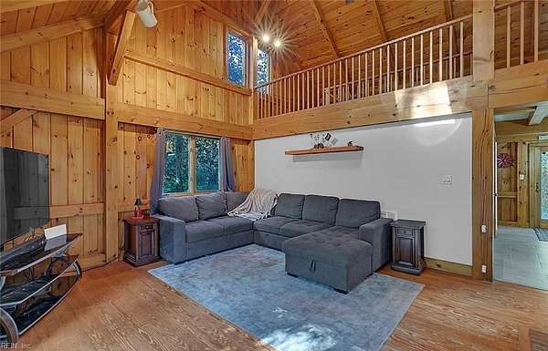 Est $2,458/moHere it is a wonderful cape with the first-floor primary bedroom, beautiful 2.28 acre wooded lot with a whole house generator. There are two rear decks perfect for being outside in the natural setting. An oversize two car garage with a storage area above or a rec room. Beautiful Pine floors, high vaulted ceilings with exposed beams with skylights, a formal dining room, a heated and cooled sunroom and upstairs you have a nice balcony and a third bedroom.