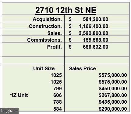 For an Investor/Builder/Developer/Restauranteur or house hacking primary residence owner. Create this potential 6 unit building and sell as condos or don't subdivide it and hold as a 6 unit apartment. Or live in one unit and rent / AirBnB the others. Or create a brand new restaurant. This commercially zoned vacant lot is perfect for a by right project as it helps avoid so many of the complexities associated with adding to DC's housing stock. --No chimney setback issues --No adjoining property on either side that would cause 10' rule --The previous structure was already demolished eliminating that risk and cost --There's no required lengthy underpinning of adjoining structures --The property already has a curb cut. --Schematic Design phase with Cross Design Group already paid for. --New structure would still not connect to neighboring structures on either side. The architecture firm has determined there's a total buildable square footage of 5,184sf if you go for the IZ bonus. Please see the prospective pro forma in the photos that is made in accordance with the buildable square footage and uses a cost of construction equal to $225 per sf. The property is fenced off for safety so please view property at your own risk.