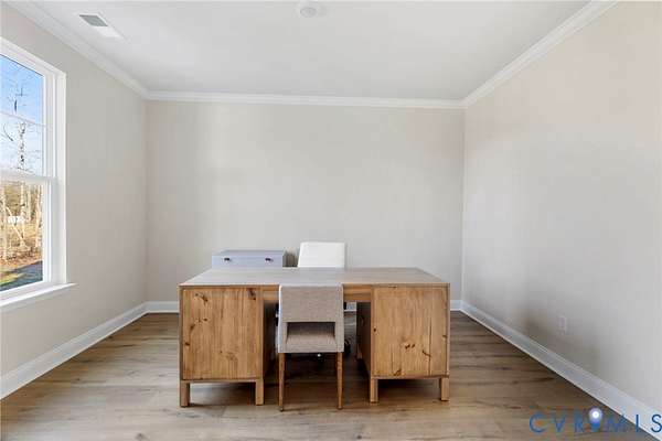 Located on 10 acres in Powhatan, this newly constructed Vanderbilt floor plan by DR Horton offers approximately 3,200 square feet with a functional and well-balanced layout. The design provides an open flow between main living areas while still allowing for separation where needed. The kitchen is equipped with quartz countertops, a large center island, a walk-in pantry, and upgraded appliances, and opens directly to the great room. The great room features two-story ceilings, a gas fireplace, and access to the covered deck, creating a comfortable space for everyday living and entertaining. The primary bedroom is situated on the first floor and includes an ensuite bath, a walk-in closet, and private access to the covered deck. A separate office or flex room is also located on the main level, offering flexibility for work or additional living space. The second floor includes a loft overlooking the living area below, along with additional bedrooms featuring walk-in closets and two full bathrooms. The layout supports a variety of uses while maintaining practical separation between spaces. With acreage that allows room to spread out and enjoy privacy, this home offers the space and setting to support a range of lifestyles.