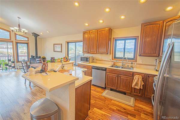 The inviting two story home features a whopping 5 bedrooms and 3 full bathrooms, 2 living areas that showcases a warm and inviting atmosphere. The main floor has commanding views of the Collegiate mountain range. Step out to the spacious 336 square ft. deck with your favorite beverage for the commanding views and vibrant sunsets while watching the wildlife in this serene area.The lower level with its own entrance is well planned and has its own wet bar/kitchen providing many options.