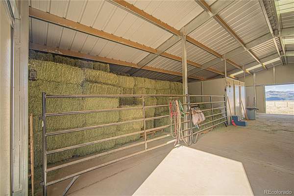 Plans are available for the newer (5 years) barn with 4 covered horse stalls with tack room and hay storage. The well is approved for animals plus a seasonal ditch runs through the property. Some outside watering is also allowed.