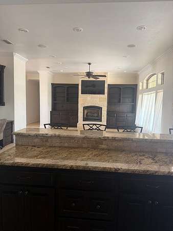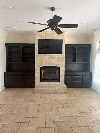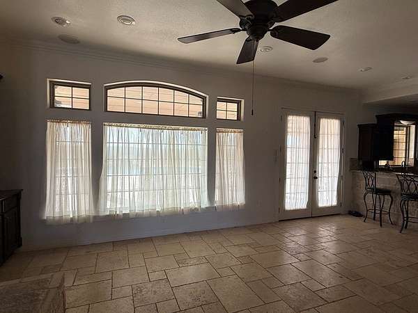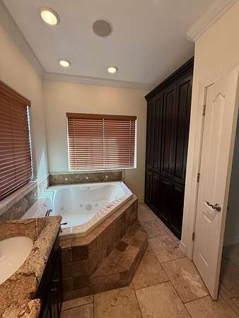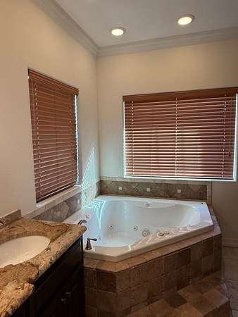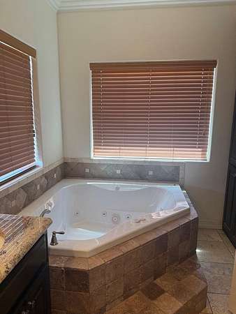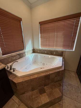 - Auto Garage Opener, Ceiling Fan(s), Drapes, High Ceilings, Jetted Tub, Pantry, Shades/Blinds, Solar-Owned, Tile Flooring