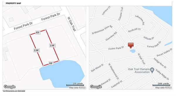 Treed Residential Vacant Land in Welcoming and popular Oak Trail Shores Community! Private pond in your backyard! Just minutes and near Lake Granbury, this beautiful 0.215-acres vacant residential lot charms with lush mature trees. Imagine the possibilities of a beautiful forever home, profitable investment property, and or an exciting vacation abode. Mobile-home and single-family home friendly, the community has a rich variety of styles and residence sizes. New homes under construction in area will continue to increase the value of this property. The Oak Trail Shores community offers a multitude of amenities, such as a community pool, playground, parks, boat ramp, fishing pier, a clubhouse, soccer field and basketball court. Seller fin. is available with low down payment. Thank you for viewing our property.