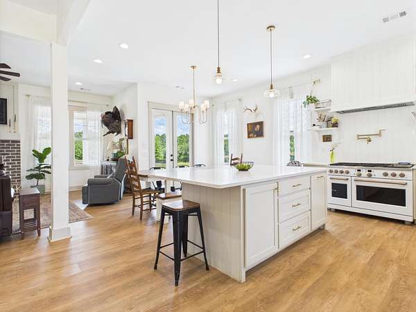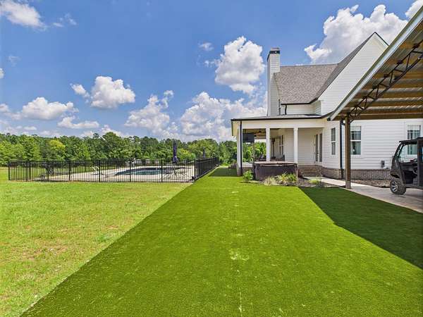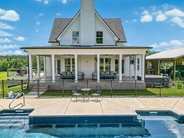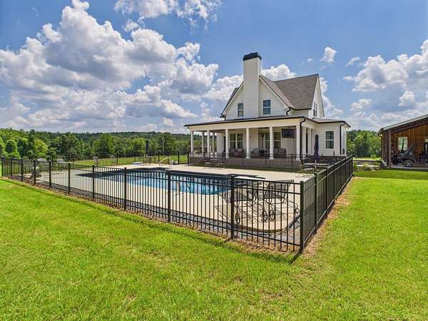 55+ acres of rolling pasture and serene woodlands surround this newer custom home with a saltwater pool! Featuring 4 beds, 3.5 baths, and an open-concept layout, the home offers luxury vinyl plank flooring, custom cabinetry, quartz countertops, and a spacious island. The main-level primary suite adds comfort and privacy. Step outside to a covered patio, expansive deck, and refreshing saltwater pool—perfect for entertaining! The land is fenced, irrigated, and lit for beauty and function. A 3-car carport and basement storage provide added convenience. Ideal for livestock, recreation, or peaceful living—this is more than a home, it's a highly desired lifestyle!