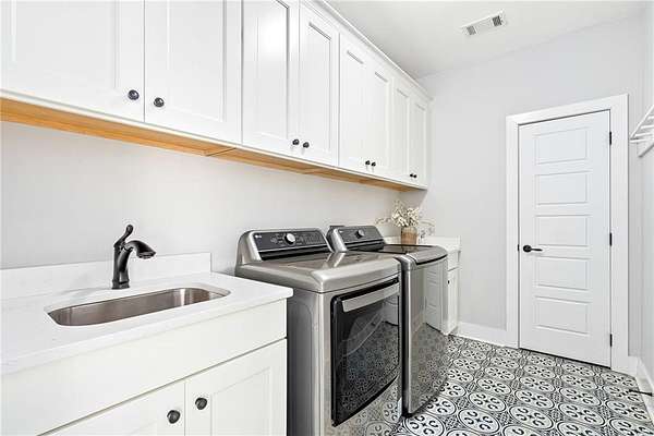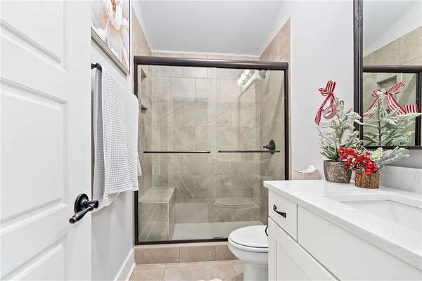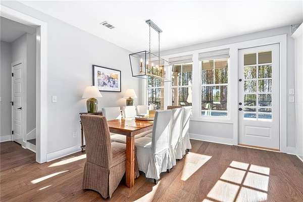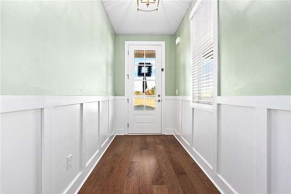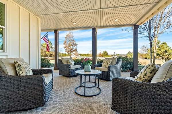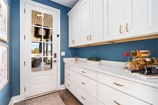 A dream front porch spans the width of the home, creating the perfect setting for morning coffee or slow afternoons. A private screened-in back porch offers another relaxing retreat and overlooks the expansive backyard. The front porch conveniently connects to the kitchen through a beautifully designed butler's pantry and friends' entry.