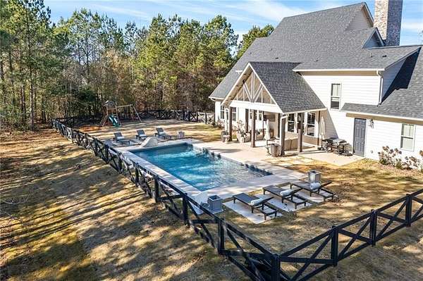 Out back, a gorgeous pool invites endless summer enjoyment! Additional property features include two additional power panels already in place for a future shop, a three-car garage with extra parking pads, spray-foam insulation for efficiency, and abundant storage throughout.