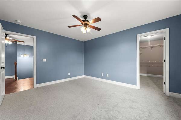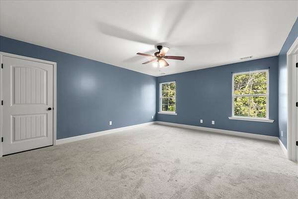 If you are looking for a rental home with space, privacy, generous sized bedrooms, and a large lot, this one is a wonderful fit! Sitting on 1.51 acres, it welcomes you in through a foyer that opens into the heart of the home. The living room is warm and inviting with a fireplace and it connects seamlessly to the dining area and kitchen, making it an easy place to gather. Just off the main living space, the primary suite is tucked away for privacy. Vaulted ceilings give the room an open, airy feel, and the attached bath and walk-in closet create a comfortable retreat. A large laundry room and convenient half bath round out the main level. Upstairs, you will find three additional bedrooms, each with brand new carpet. The layout provides plenty of flexibility, whether you need guest rooms, office space, or room for a growing household. Outside, the land itself becomes part of the experience. With 1.51 acres, you will have room to spread out, enjoy quiet mornings, or host gatherings surrounded by nature, all while being part of an established community!