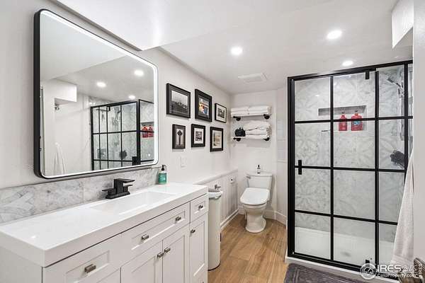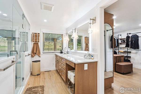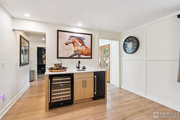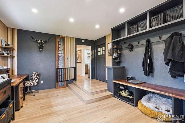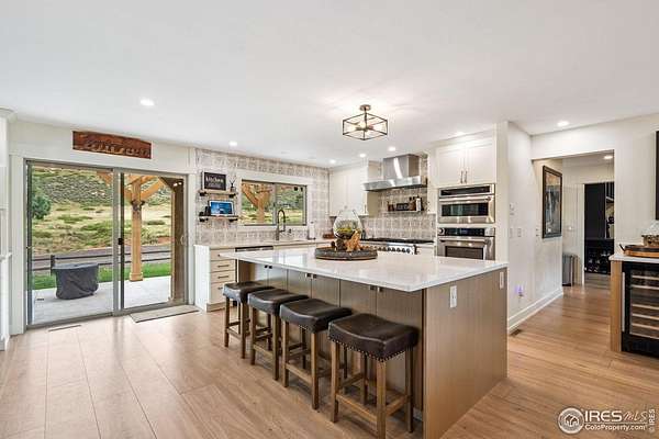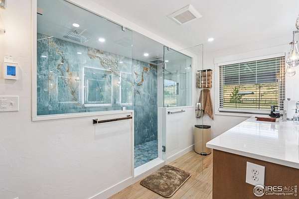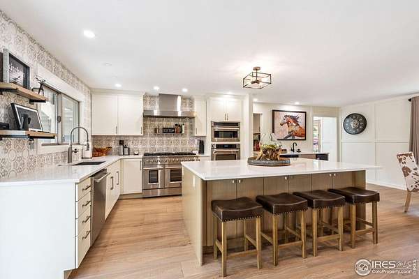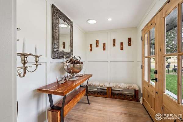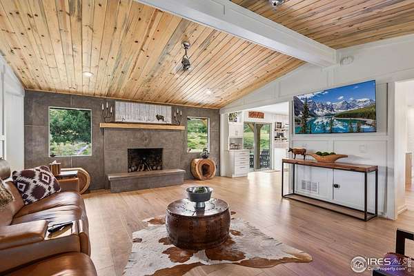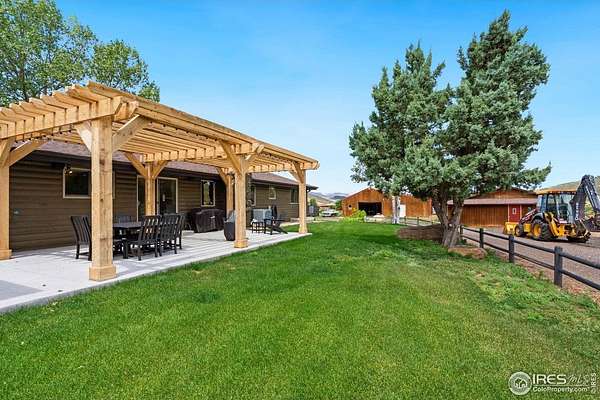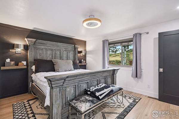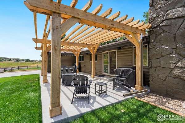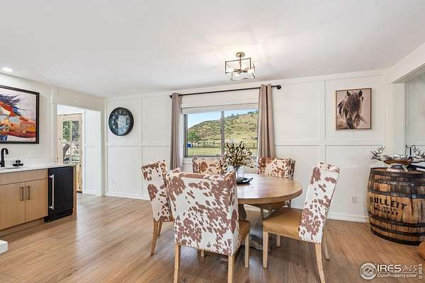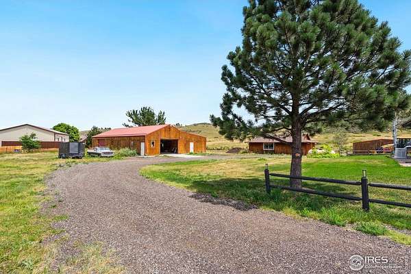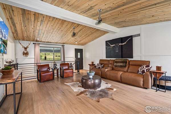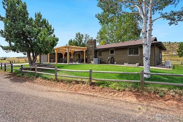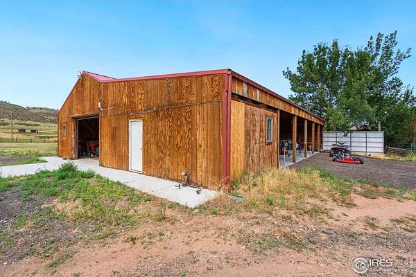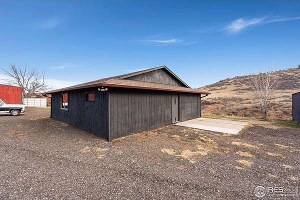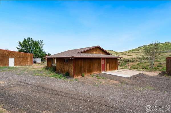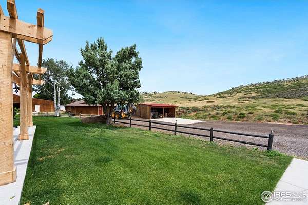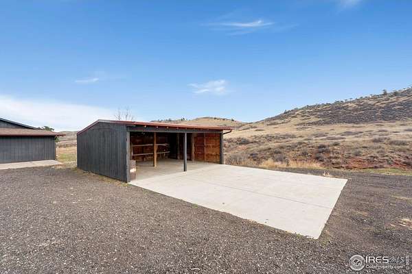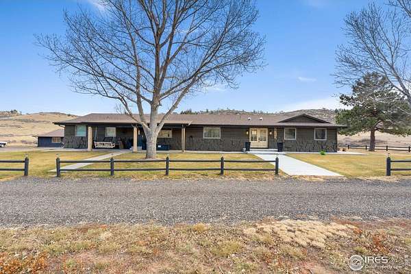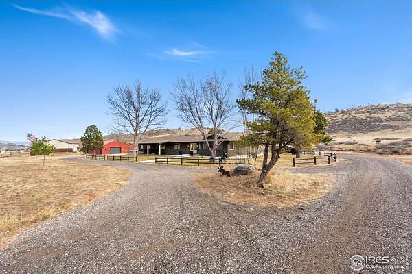 Experience luxury & tranquility in this completely renovated by builder/owner, 3,564 sq ft ranch home on 12.5 lush acres /rock outcroppings offering breathtaking views of foothills. Blending sleek sophistication with contemporary elegance, this thoughtfully re-designed home welcomes you w/warmth & new windows that flood the home w/natural light. Stunning stone hearth graces the gas fireplace creating a cozy, inviting atmosphere. Vaulted ceiling is crowned w/beautiful wood & beam ceiling that adds character. Gourmet kitchen is culinary dream, featuring quartz counters that cover oversized island w/breakfast bar, designer tile backsplash, high-end appliances including Forno double oven/microwave, Forno gas range, 2 built-in Forno refrigerators & dishwasher. Wine bar with refrigerator elevates your entertainment possibilities. Butler's pantry for special kitchenware, quaint 1/2 bath adjacent to laundry room & pantry. Home office offers privacy w/private entrance. Main level primary suite has spa-like bath w/2-person walk-in shower, oversized vanity, washer/dryer & walk-in w/custom built-ins. Basement features theater room, wet bar with wine refrigerator, 2 bedrooms, 3/4 bath & nice sized storage room. Outdoors you can enjoy wildlife and serenity on an oversized patio with a custom pergola enhanced with a hot tub & Al Fresco patio lights for evening BBQs. 2-car attached garage plus ample parking space for your recreational vehicles. Outbuildings include a 2,272 sq. ft. shop w/fully finished entertainment room that includes pool table and tv perfect for watching the game, a tack room/office and a covered loafing shed, additional storage shed, and an oversized loafing shed with concrete apron. Outbuildings are perfectly set up for your large & small animals! 15 mins from the Loveland corridor amenities. Close to the entrance to Big Thompson Canyon along the river leading to Estes Park & Rocky Mountain National Park. No HOA or covenants! Bring your horses! Welcome HOME!