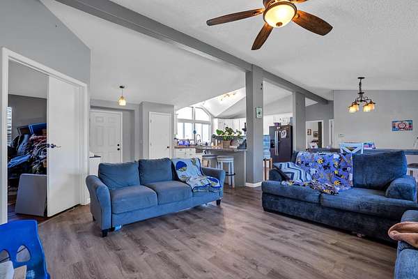 Est $1,787/moLooking for peace and quiet...then look no further. Welcome to this updated manufactured home with open floor plan, on 5.95 acres. This 3 bedroom, 2-bath home, plus study, offers plenty of natural light, vaulted ceilings, and laminate flooring throughout. Stunning kitchen with granite countertops, black stainless appliance, farm sink, and large island. Master bath features beautiful large walk-in tile shower and granite vanity. Extra-large 2 car garage with in-law or ADU potential. This property has endless possibilities, with level useable land, a large, fenced backyard area, and an outdoor shed with A/C. Bring the kids, animals, or just a quiet place to get away!
