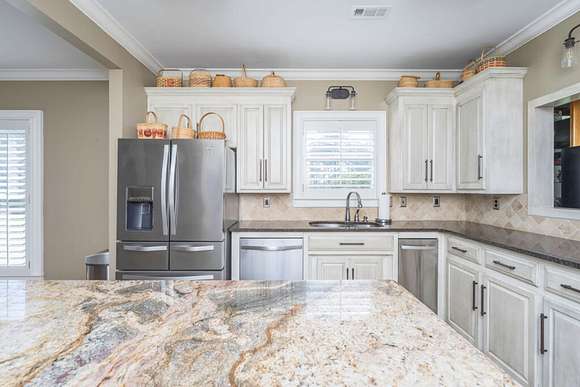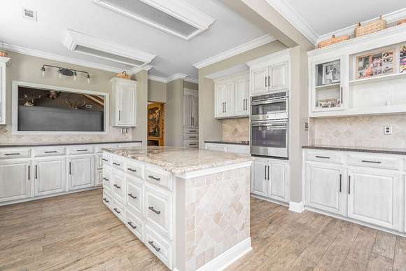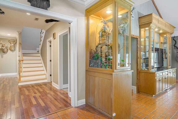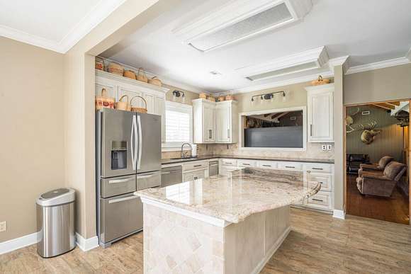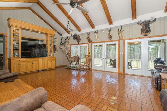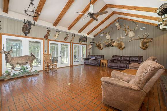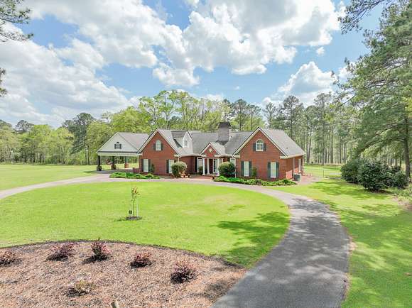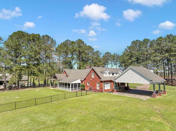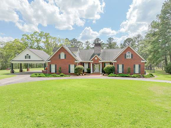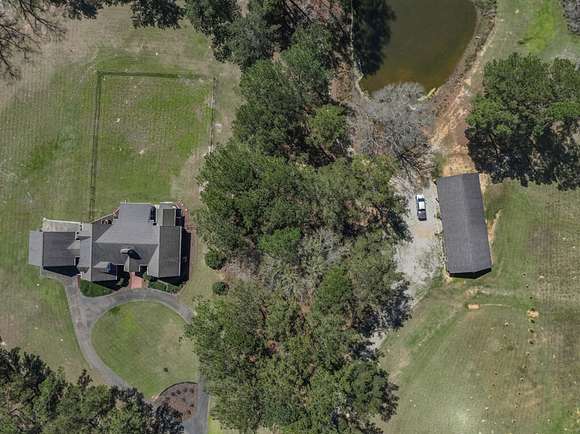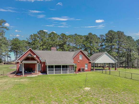 Welcome to Whispering Waters! An astonishing oasis teeming with wildlife and a state-of-the-art home nestled on 83 acres with stunning views! This is truly one of the most spectacular properties in the area with so many amenities and possibilities! The newly landscaped custom home is incredible! Boasting almost 3,500 square feet, this home has so much to offer! The downstairs master bedroom has a large walk-in closet. The master bathroom is very spacious and has an AWESOME walk-in custom shower. The kitchen is completely custom including gorgeous countertops and cabinets, updated trash compactor, garbage disposal, built in microwave, self-continuous clean oven and an in wall central vacuum system. There is a bonus room that could be used for a downstairs bedroom or an office. The vaulted living room is spacious with wonderful views of the backyard. Upstairs there are an additional two bedrooms and two fully updated bathrooms. There is also an additional kitchen area with a freezer included. The screened in back porch is perfect for watching the world wake up and entertaining guests! Brand new gutters were installed in 2024. Above the carport is another level offering tons of storage or finish it out for more living space! The property is fed by county water, but there is also a well that feeds the inground sprinkler system and can feed the small pond. The home overlooks a stunning mature pine plantation with views of the large lake and open meadows. Next to the house, there is an barndominium with one bedroom and one bath along with a newly updated cabinets and countertops! The barndominium also offers covered storage for tractors, implements and whatever else is needed. The property is truly turnkey with diverse landscapes including mature hardwood, mature loblolly pine stands and a small longleaf pine stand which is about 15 years old. There are four well-established food plots along with five new ladder stands, four well-built metal ground blinds and a tower stand big enough for the whole family! The owners are some of the most conservation minded people I have ever met. Case in point, they have spent the last two years hand planting approximately 1,800 trees of different varieties including oaks, loblolly and longleaf pines, flowering trees and several other wildlife attracting trees! The lake is host to giant bass and has a pavilion overlooking it with a built-in grill, perfect for entertaining large crowds! Next to the home, there is a smaller pond that would make for a great bream or catfish pond. On the east side of the property, there is a small horse barn with power and water available. Sit on the back porch, sip coffee and watch the wildlife wake up! Welcome home! Call any time with any questions!