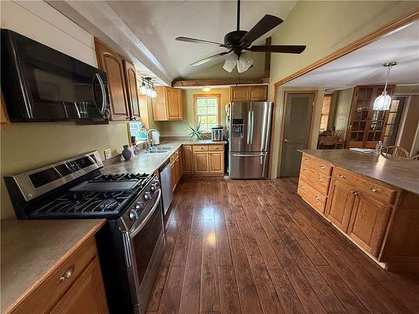 Charming Country Farmhouse on 14.4 Acres with Pond, Barn & Outbuildings! Discover the character and warmth of this beautiful 2-story farmhouse, set on a scenic 14.4-acre lot complete with a peaceful pond, open fields, a barn, and an additional outbuilding-perfect for hobbies, storage, or livestock. This home offers 3 bedrooms and 2 full baths, one conveniently located on each floor. The spacious layout includes a welcoming formal dining room with wet bar, a bright, open kitchen with a central island and newer appliances. From the dining room, exit through the French doors to be met with a covered deck and a cozy screened porch, perfect for entertaining or taking in the beautiful scenic views. A first-floor laundry adds modern convenience. Recent updates ensure comfort and efficiency, including a newer HVAC system with central air (2021), a metal roof, and a newer hot water tank. A rare opportunity to own a versatile property that blends farmhouse charm and plenty of space to live, work, and play! No negotiations until Monday, 10/13/2025 @ 3PM.