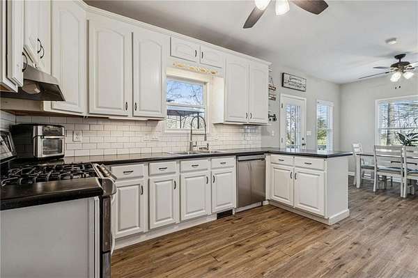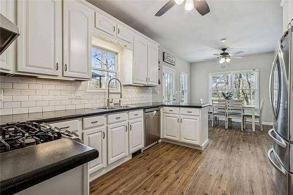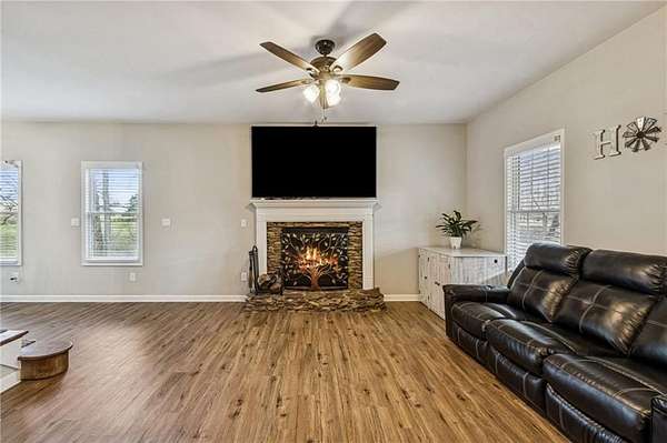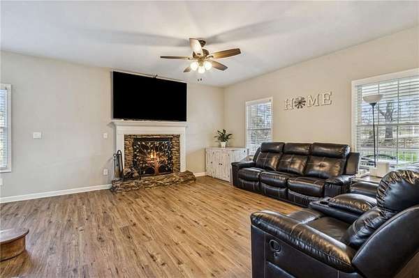 Country charm meets modern comfort in this beautifully remodeled farmhouse set on 2 private acres. Wake up to peaceful sunrises, relax with breathtaking sunsets, and enjoy the feeling of being tucked away in the countrysidewhile still being just minutes from Milton, Alpharetta, and shopping. With no HOA, top-rated Cherokee County schools, this property offers the perfect blend of lifestyle and location.A long private driveway leads you to a welcoming front porch that stretches the full length of the homean ideal spot for gatherings, easily accommodating 30 or more guests. Inside, the home shines with soaring ceilings, abundant natural light, LVP flooring throughout the main level, fresh paint, and a stunningly renovated kitchen featuring white cabinetry, and a stylish tile backsplash.The main-level owners suite provides comfort and convenience, creating a layout that works beautifully for both today and the years ahead. Upstairs offers incredible flexibility with five bedrooms and two full bathrooms, making the space perfect for a large family, visiting guests, or multiple home offices.The fully furnished basement is designed for fun and function, offering generous space for recreation, work, or entertainment. New full bathroom and a bonus room that could be used as a bedroom.Outside, the land truly sets this property apart. The expansive backyard offers endless possibilitiesgarden, play, entertain, or even keep a few animals. Surrounded by million-dollar homes yet offering privacy and space, this property is a rare opportunity to enjoy peaceful country living without sacrificing convenience.
