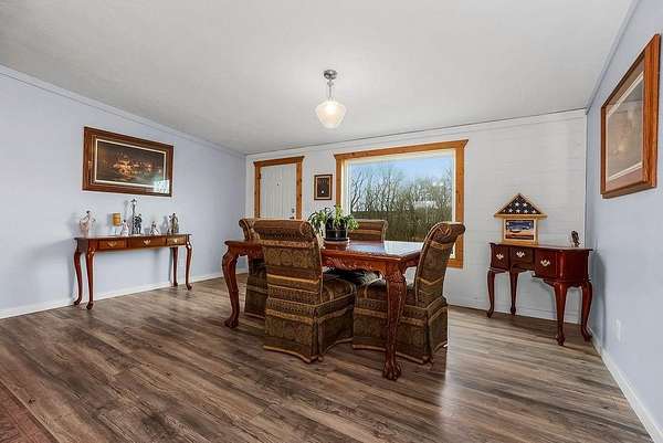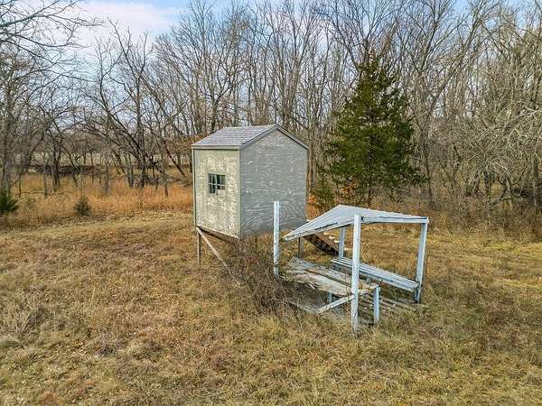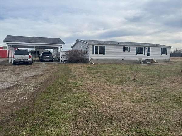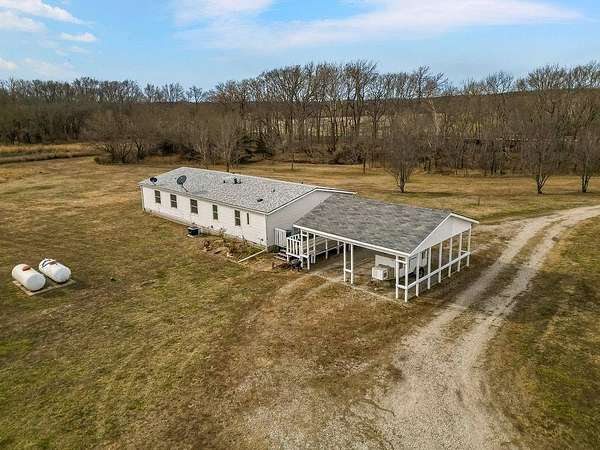 Your Ideal Hunter's Retreat Awaits! Follow the blacktop frontage to this stunning 38.4-acre property - a true outdoorsman's paradise where abundant wildlife roams freely. The land features a peaceful creek, a picturesque pond, and even a deer stand for the avid hunter. A tree-lined border along the main road ensures privacy and seclusion. The meticulously maintained, single-level manufactured home offers over 1,800 square feet of comfortable living space and is move-in ready. The spacious kitchen boasts an impressive amount of cabinetry and storage, while the open-concept great room and dining area showcase a large picture window with beautiful views of the countryside. Generously sized bedrooms provide plenty of closet space. Recent updates include: New roof (2020) Anderson windows throughout (2023) New HVAC system (2024) New water heater & dishwasher (2025) Approximately 30 acres are in brome field, currently maintained and harvested by a neighbor under a 50/50 hay production agreement. Additional features include a double car carport, 24x30 metal building with concrete floor, 25x30 outbuilding built in 2000, chicken coupe and plenty of open space to enjoy.