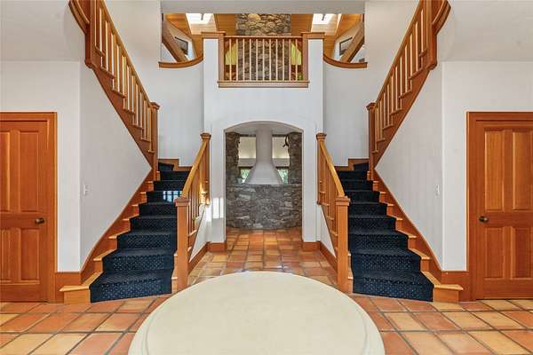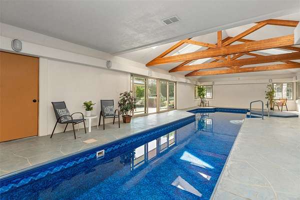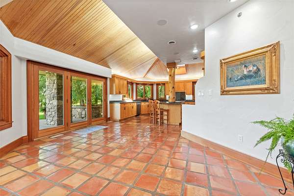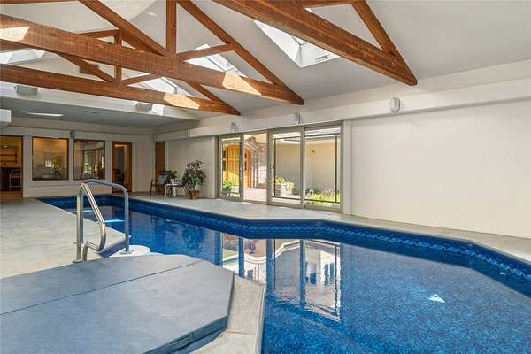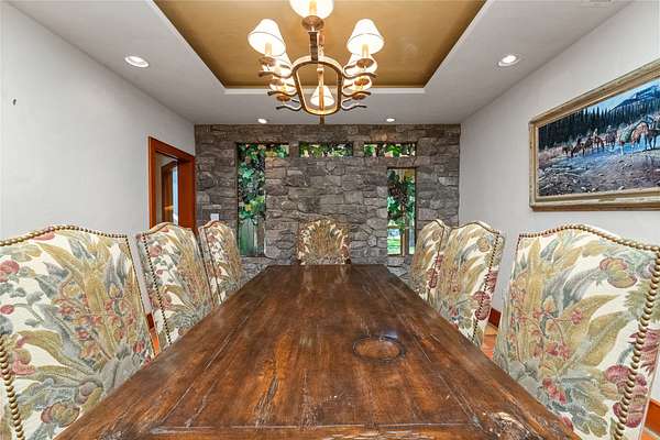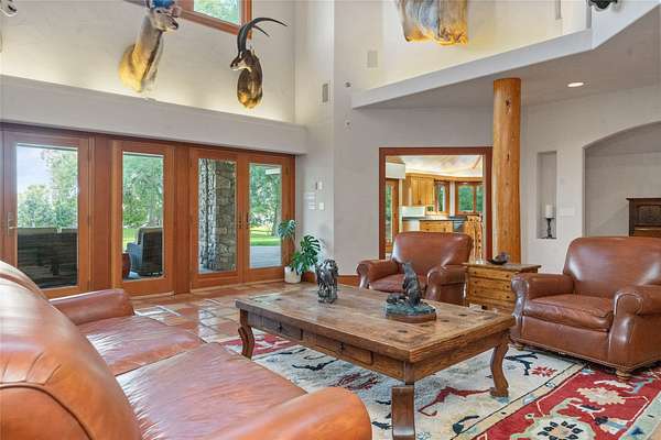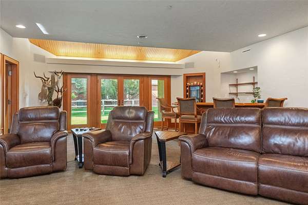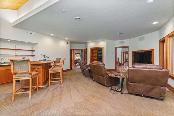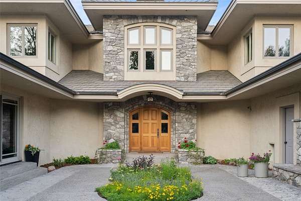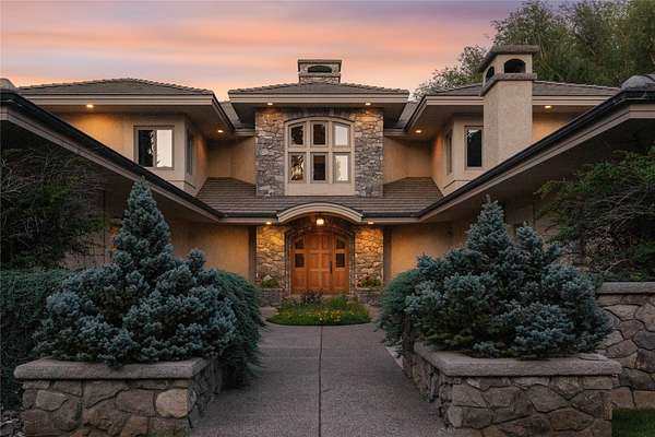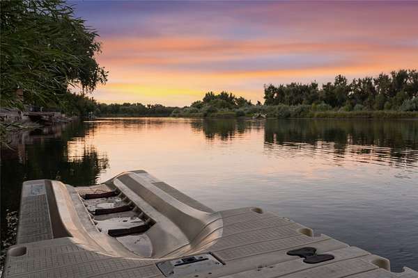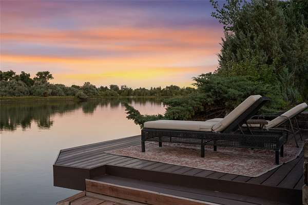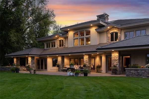 Welcome to 7,000+ sq ft of refined living on 1.8 private acres on the Missouri River - just steps from the prestigious Meadowlark Country Club. This extraordinary 5-bed, 6-bath estate blends luxury, privacy, and lifestyle. Enter through a gated drive into a serene, manicured setting where craftsmanship shines. Inside, rich custom woodwork, chef-grade Viking appliances, and a custom wine cellar set the tone for elegance. Expansive living areas, a cozy sunroom, and soaring ceilings feel both grand and inviting. At the heart of the great room, a dramatic floor-to-ceiling rock fireplace adds warmth, character and a striking focal point. Entertainment features include a sports room with full bar, plus a luxurious indoor pool and hot tub for year-round enjoyment. Outdoors, enjoy river access, a private dock, and landscaped grounds perfect for relaxing or hosting by the water. All this, in a quiet neighborhood just steps from the golf course - a private retreat designed for living well.