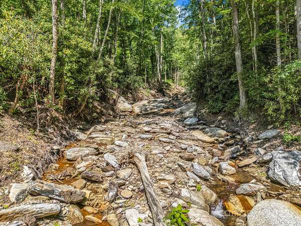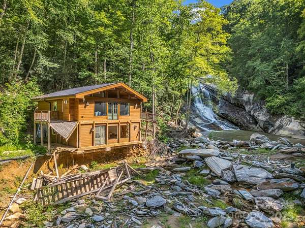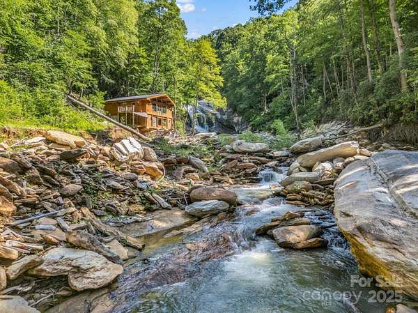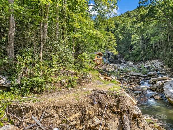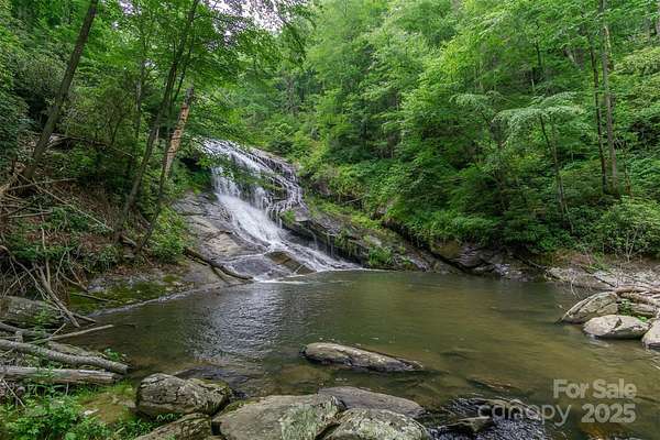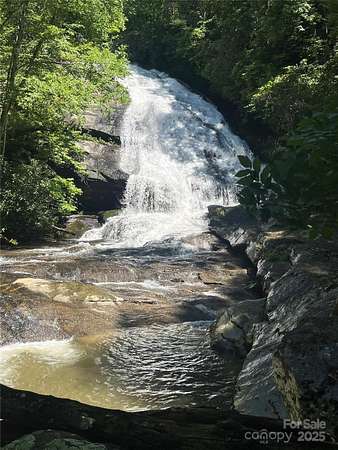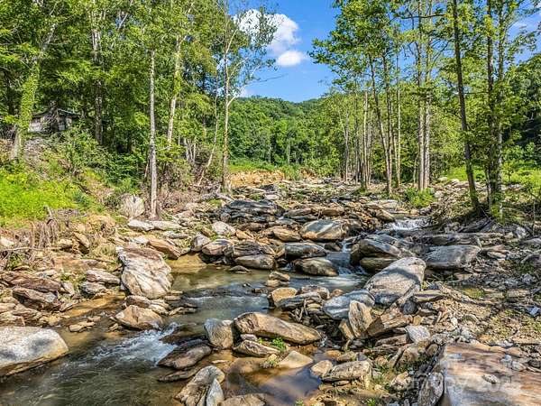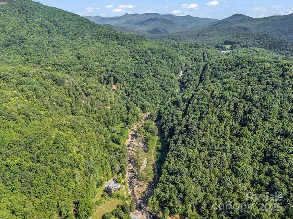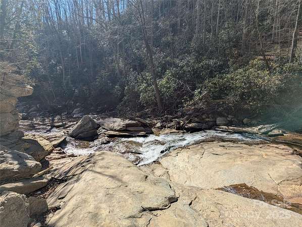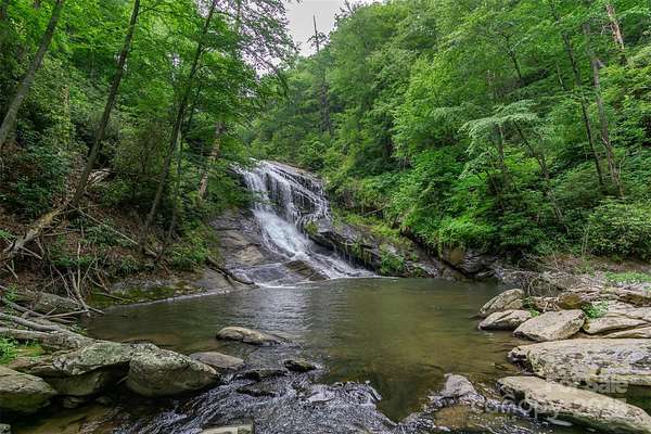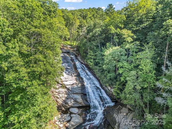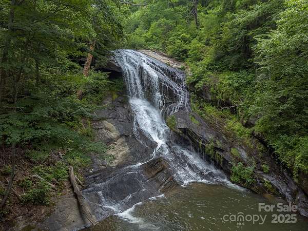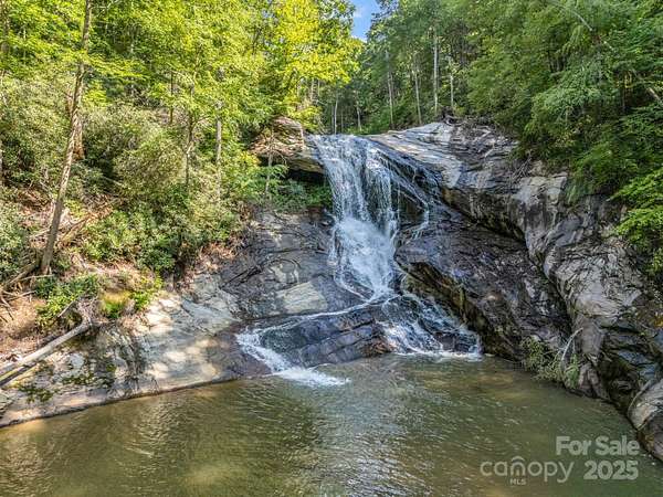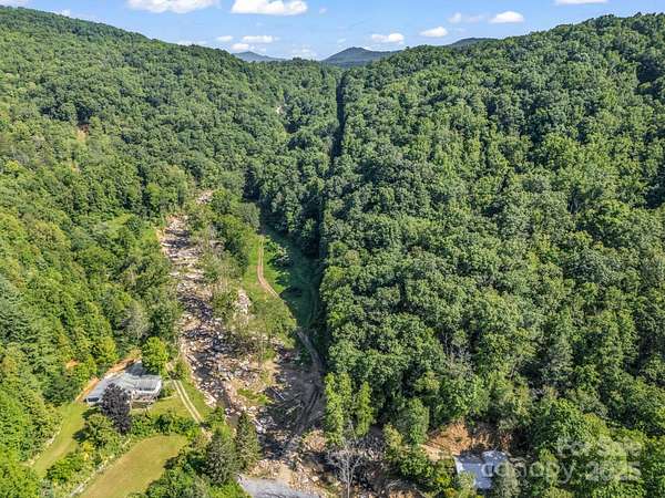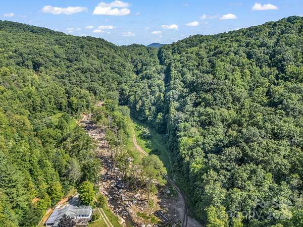 Incredible 52+ acre waterfall property between Black Mountain and Lake Lure! There are 3 gorgeous waterfalls and swimming holes that would rival anything you would see in nearby national forests. Flat Creek is the named stream that runs through the property and is home to rainbow and brown trout. Prior to Helene, the house was renovated and operated as a successful vacation rental. The storm damaged the lower level, and it is scheduled for removal by Buncombe County. The most likely build sites on the property are located on the southeast section of the parcel, where you enter the property. With some grading and new roads, additional building sites are accessible (with amazing view potential). Let your imagination run wild with new hiking trails, fishing adventures, picnic spots, and more! OPEN USE ZONING! There is a hiking trail that runs up the east side of the stream to the top of the property, with a steep side trail that provides access to the upper waterfall. Land has 2 access points; the SE corner and a right-of-way on the west side via a culvert over a small tributary (but the bridge is gone). See Virtual Tour for video/survey. Map of property showing the main features is available from agent.