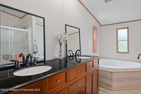 - Ceiling Fan(s), Double Vanity, Kitchen Island, Pantry, Primary Bathroom -Tub With Separate Shower, Split Bedrooms, Vaulted Ceiling(s), Walk-In Closet(s)