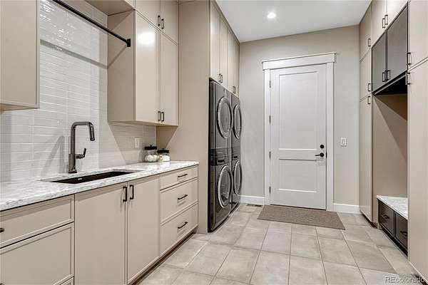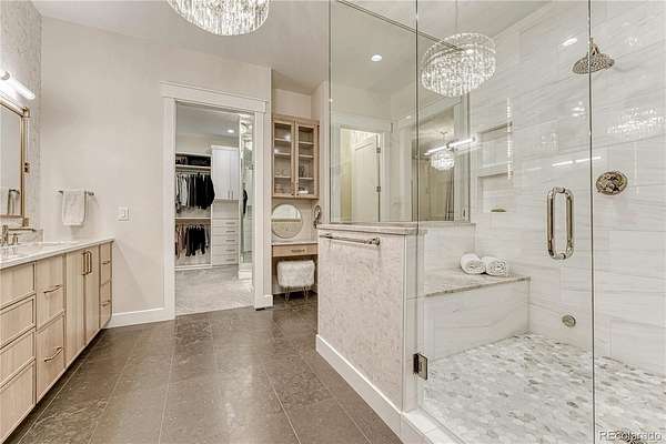 The reimagined Primary Suite is a true retreat, featuring a luxurious bedroom and spa-inspired bath with heated floors, a Brizo steam shower system, and a beautifully designed vanity. A fully customized closet includes a pull-out ironing board and dedicated jewelry drawers. The redesigned laundry room stands out with two washers and two dryers—rare at this price level.
