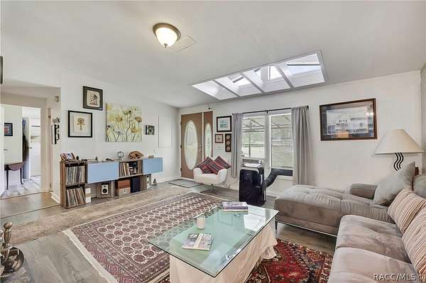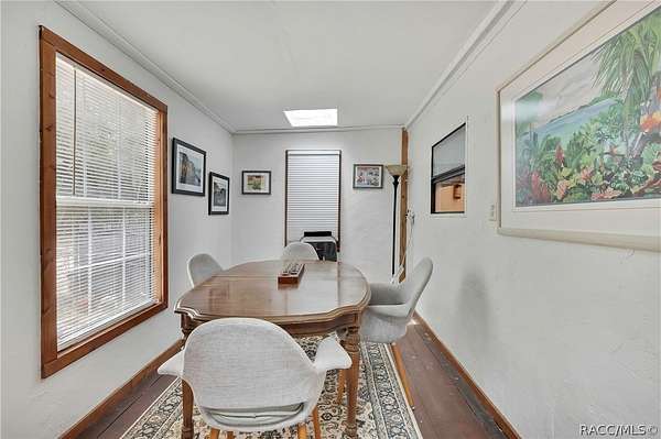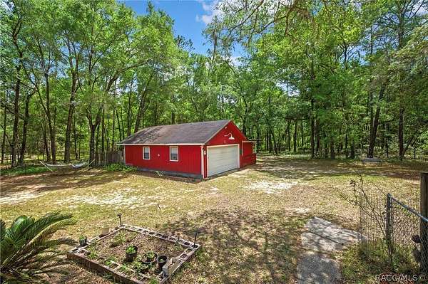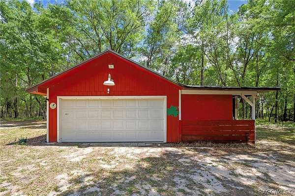 Welcome to your future retreat and a bird watchers delight! This tastefully updated 1477 Sq ft, 3 bedroom, 2 bath mobile home is nestled on 4.9 acres of natural beauty. Home features light, bright living room with wood burning fireplace, convenient kitchen, and spacious master bedroom complete with en-suite boasting dual sinks and step in shower. Split floorplan offers plenty of space for family or guests. Both baths updated with solid surface counter tops. A number of old growth trees about the property provide plenty of shade and privacy. Property boasts 2 garages, one constructed of concrete block and the second frame with cedar plank roof decking and an attached covered garden or workshop area. Both garages have concrete floors, electric (110/220) and water plumbed to buildings. The entire property is fenced in with a single gate entrance on the north side. 2 separate utility poles on opposite sides of the property. Plenty of space for RV and any other "big toys". A natural paradise with flowering plants and shrubs that attract bees, butterflies, hummingbirds and a host of other pollinators daily. Above ground flower beds with organic, chemical free, soil add to the appeal. Sitting at approximately 200 ft above sea level this place is high and dry. Deep well serves up crystal clear, cold water. A definite Dark Sky contender with almost zero light pollution from the property or streetlights on this no thru traffic street. A quiet neighborhood offering convenient access to the nearby Withlacoochee River and Lake Townsen Park -Baseball Diamond, Boat ramp, horse trails and access to the Withlacoochee State Trail. Call and schedule your viewing today!
