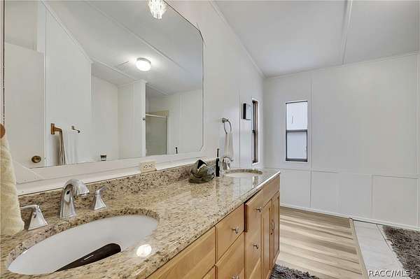 - Dual Sinks, High Ceilings, Laminate Counters, Main Level Primary, Primary Suite, Separate Shower, Shower Only, Vaulted Ceilings, Walk In Closets, Window Treatments