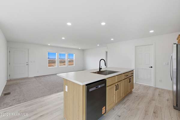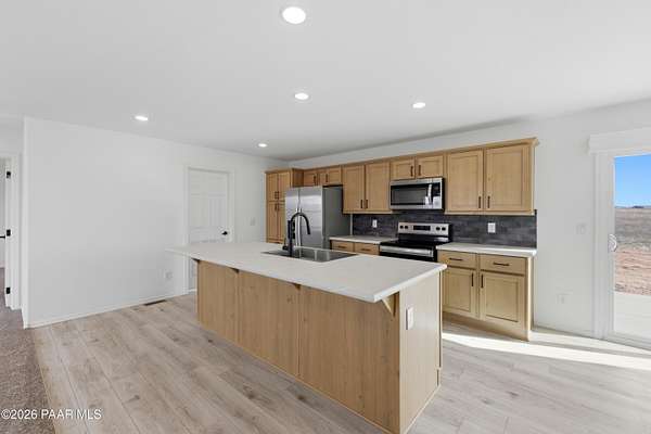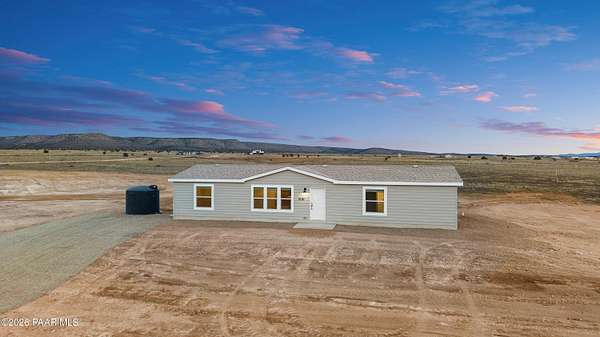 Experience true country freedom in this brand-new home situated on a level 2-acre parcel with sweeping mountain views. This home features 4 bedrooms, 2 baths, stainless steel appliances, air conditioning, and a spacious kitchen with a central island--perfect for everyday living and effortless entertaining. A sliding glass door opens to a generous rear patio where you can unwind and enjoy quiet sunsets and endless Arizona skies.With room to roam, space for toys or animals, and the peaceful privacy of rural Paulden, this property offers the ideal setting for wide-open, self-sufficient living--while still providing all the comfort and convenience of a modern, newly built home.