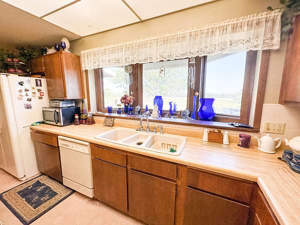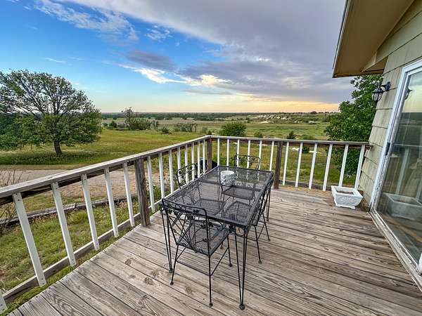 Price Reduced!! Introducing a beautiful rural home in Graham County, Kansas, situated just off of the Solomon River and Highway 24! Overlooking the beautiful landscape of northwest Kansas, this 4 bedroom, 3 bathroom home sits on 33 +/- acres. As you enter the home, you will be greeted by a gorgeous kitchen that leads into the living room with vaulted ceilings and a stunning fireplace. There is a walkout private deck from the living room to enjoy some beautiful weather as well! The large windows not only let in lots of natural light, but provide you with incredible views from inside! There is a second walk-out patio deck from the dining room as well! Lastly, there is a spacious sunroom/walk-out porch area. Moving down to the 2,200 square foot basement, there is plenty of room for storage as well as hangout rooms for family and guests. To top it off, there is a walk-out patio in the basement that takes you to the wraparound gravel driveway. Adjacent to the home is a 4,950 square foot metal building providing a great amount of space to store a vehicle or other belongings. This property is covered in wildlife and is known to have plenty of deer and turkey that pass through, providing you with hunting potential right out your door. Only 2 +/- miles from Bogue, 10 +/- miles from Hill City, and 13 +/- miles from Webster Lake, the location of this property could not be any better! Here is your chance to own a piece of rural Kansas! All showings are by appointment only. If you would like more information or would like to schedule a private viewing please contact Doug Wagoner at (785) 769-3038 .